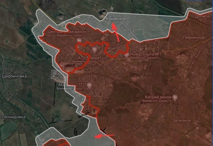 На Торецком направлении ВС РФ продвинулись в Крымском, давят в направлении Леонидовки.