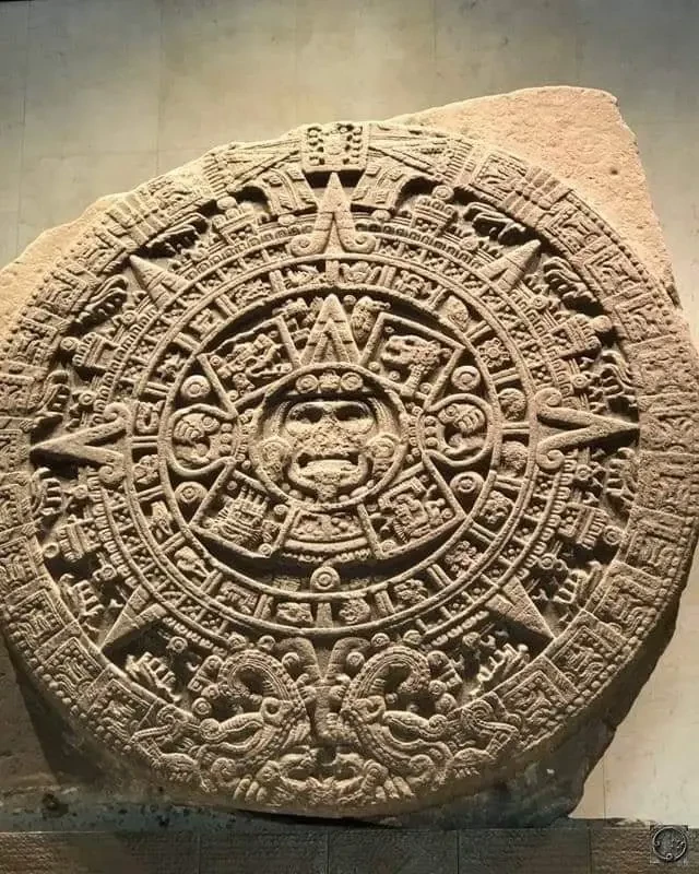 Самый известный памятник культуры ацтеков — камень бога Солнца Тонатиу. Находится в Национальном музее антропологии в Мехико и является самым известным произведением их скульптуры. Это огромный диск диаметром 3,58 метра, толщиной 98 сантиметров и весом около 24 тонн. В центре диска изображен ацтекский бог солнца Тонатиу. Современные исследования говорят о том, что его вырезали между 1502 и 1521 годами