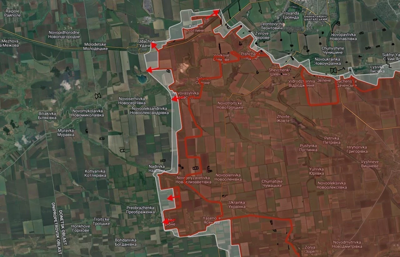 На Покровском направлении отмечаются интенсивные боестолкновения северо-восточнее Котлино, а также на восточных и южных окраинах Удачного. ВС РФ ведут штурмовые действия в центральной части Успеновки. Российские войска имеют тактические успехи южнее Надеждинки и в районе Новоандреевки, под контроль ВС РФ перешло Серебрянное.