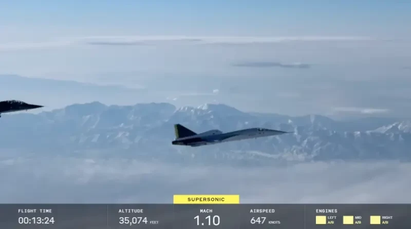 XB-1, также известный как «Baby-Boom», представляет собой демонстратор технологий в масштабе 1/3 для Overture. Он совершил свой первый полёт в Мохаве 22 марта 2024 года, и во время этого полёта XB-1 развил скорость около 500 км/ч и достиг высоты 2500 м. В тот раз за штурвалом был главный лётчик-испытатель Билл «Док» Шумейкер, а за полётом следил «Джеппетто» Бранденбург, управлявший самолётом сопровождения T-38 Talon. Что, в целом, подтверждает общую картину происходящего: в Boom Supersonic на многих должностях находятся военные/бывшие военные, соответственно, военные ведомства прекрасно осведомлены о всем происходящем в фирме Boom Supersonic.