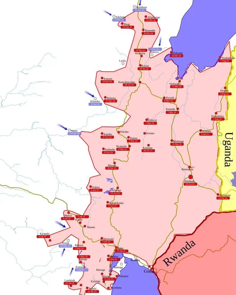 Та же группировка «уже более года контролирует рудники Рубайя в Северном Киву: данные месторождения содержат 15% всех мировых запасов колтана». Причем в США и ряде европейских стран, «ссылаясь на данные разведсообщества», заявляют, что «М23» используется Руандой как прокси-сила для боевых действий.