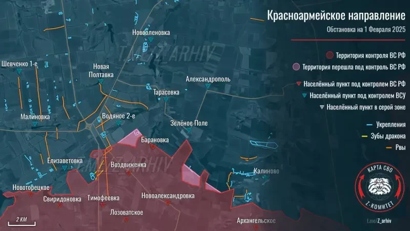 Согласно данным военного ведомства, под контроль ВС России перешло село Новомлынск Харьковской области, расположенной к северу от Купянска. Об освобождении данного населенного пункта сообщалось еще 31 января, штурмовики группировки «Запад» взяли его в ходе расширения плацдарма на правом берегу реки Оскол. Украинское командование «проспало» это расширение, а предпринятые им попытки помешать продвижению российских войск пропали втуне.
