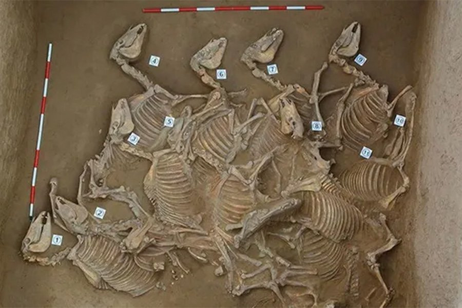 Жертвенные ямы со 120 скелетами лошадей найдены в городе бронзового века в Китае