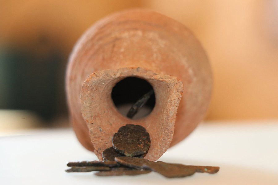 Десять монет возрастом 1400 лет в кувшине были обнаружены в древнем городе Адрианополисе (современный Эскипазар) в Черноморском регионе Турции. Монеты датируются периодом правления византийского императора Константа II (годы правления 641-668) и, вероятно, не являются кладом в том смысле, что они были намеренно спрятаны или закопаны, а больше похожи на копилку или домашнюю коробку для мелких денег.