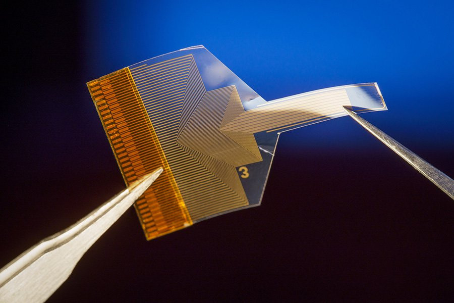 Исследователи из Калифорнийского университета в Сан-Диего разработали нейронный имплант, который предоставляет информацию об активности глубоко внутри мозга, находясь на его поверхности. Имплантат состоит из тонкой, прозрачной и гибкой полимерной полоски, заполненной плотным набором графеновых электродов. Работа опубликована в журнале Nature Nanotechnology.