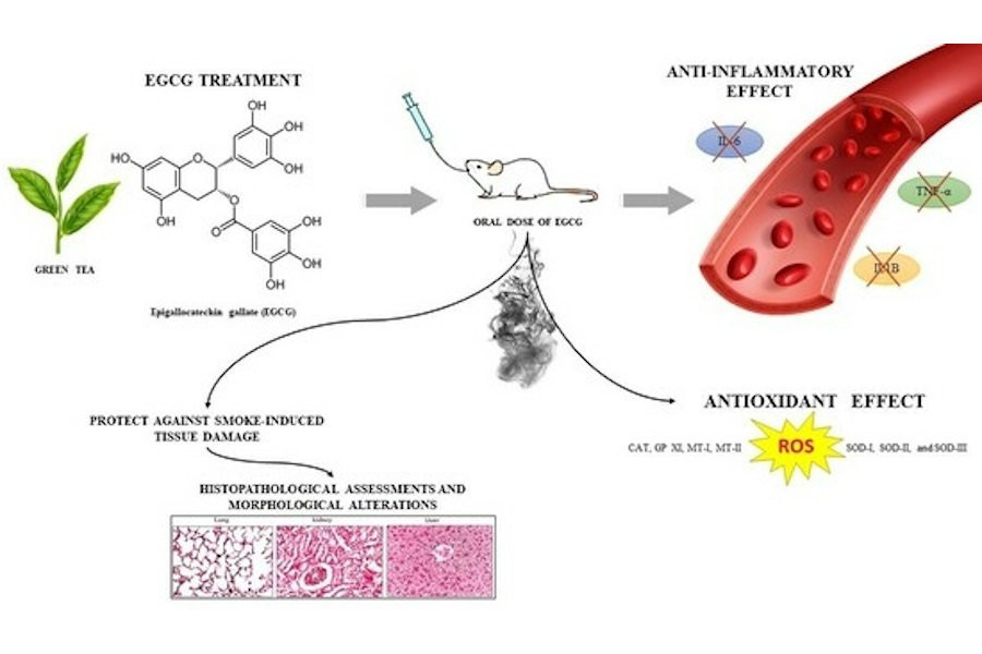 Это открытие указывает на потенциальный защитный эффект EGCG от негативных последствий курения кальяна. Улучшение гистопатологических показателей также подтвердило защитное воздействие флавоноида на ткани легких, печени и почек.