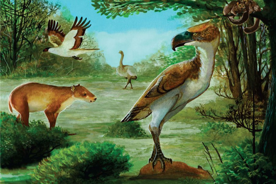 Вместо множества окаменелостей мелких млекопитающих, часто встречающихся на острове, исследователь обнаружил два окаменелых когтя длиной 8 см, подозревая, что они принадлежали большому нелетающему животному, известному как птица ужаса.