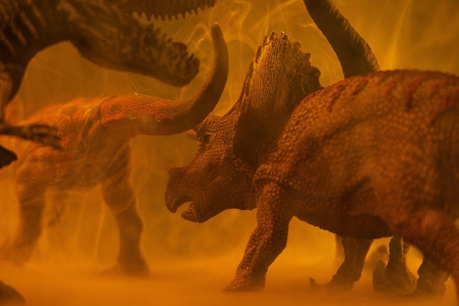 Трицератопс, которого часто изображают жестоким противником тиранозавра, сосуществовал на закате мелового периода (145–66 миллионов лет назад), встретив свой конец в результате катастрофического падения астероида, решившего судьбу динозавров. Считается, что эти древние травоядные животные служили добычей могучего тираннозавра рекса.
