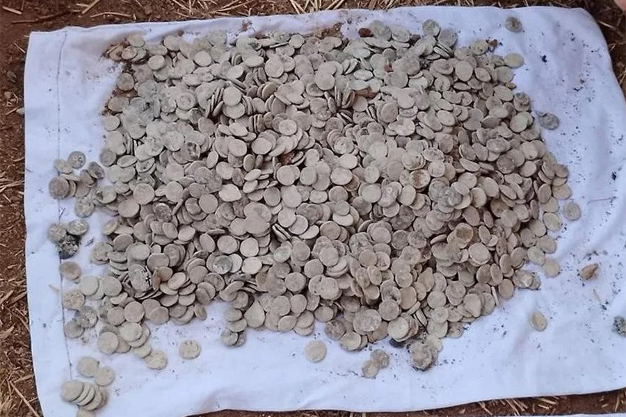 Глиняный горшок с 3730 свинцовыми монетами возрастом 2000 лет найден в Индии