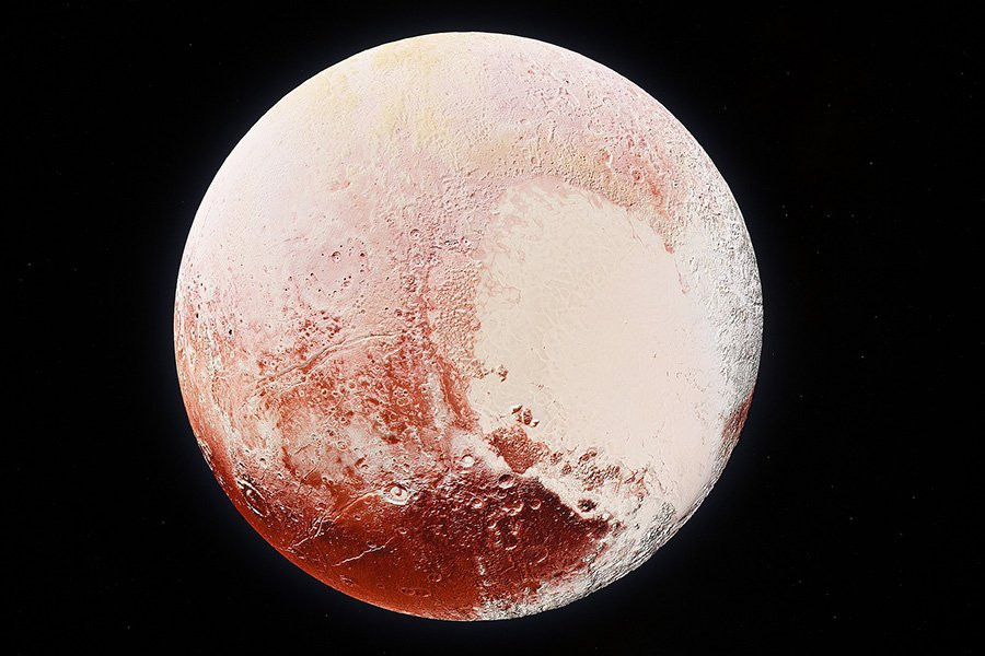 Фотографии показали необычную структуру в форме сердца на поверхности Плутона, известную как Tombaugh Regio, или «сердце Плутона», западная часть которой занимает примерно ту же площадь, что и четверть США. С тех пор эта структура озадачивает астрономов, в первую очередь из-за высокой отражающей способности белой поверхности и ее неясного происхождения.