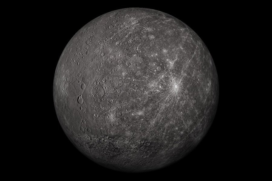 Меркурий может светить довольно ярко, но из-за того, что он находится так близко к Солнцу, на него попадает большое количество света. Доля отраженных событий невелика, всего 9 процентов. Космический корабль MESSENGER показал, что это связано с тем, что большая часть поверхности имеет большое количество графита. Хотя углерод составляет всего 1-4 процента по весу, это примерно в сто раз больше, чем на Земле, и достаточно, чтобы затемнить большую часть планеты.