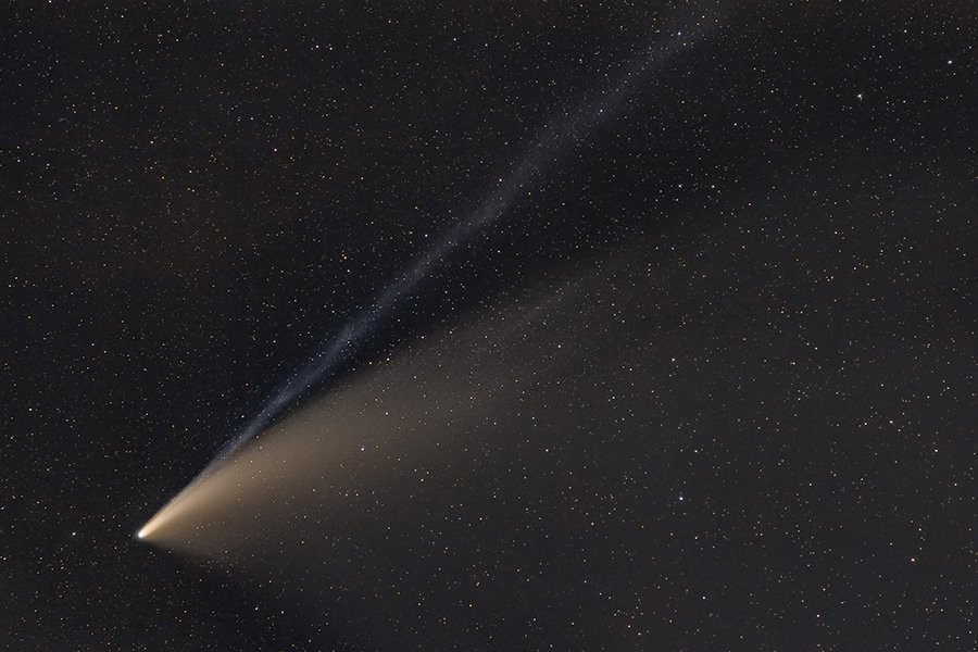 Кометы — это остатки пыли, льда и камней, оставшиеся после формирования Солнечной системы, обычно размером от 1 до 10 километров в поперечнике, и обычно вращающиеся вокруг Солнца по длинным орбитам. Их гораздо легче обнаружить, чем астероиды, из-за их хвостов, которые могут тянуться на десятки миллионов километров.