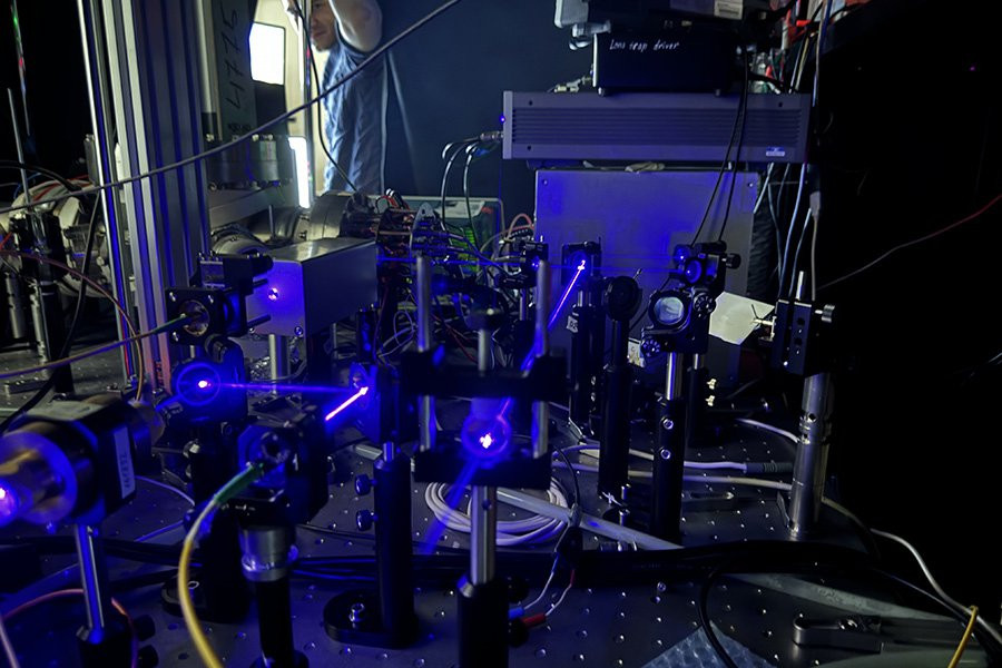 По сути, гравиметр представляет собой сверхточные атомные часы, работающие на ионах стронция. С помощью лазерного излучения атомы стронция сначала замораживаются до сверхнизких температур, а затем – также с помощью лазера – возбуждаются, начиная ритмически испускать импульсы света. Как рассказал инженер кафедры физико-технических проблем метрологии Павел Черепанов, в настоящее время разработанные в НИЯУ МИФИ атомные часы позволяют измерять время в точности до десяти в минус шестнадцатой степени – то есть до одной десятиквадрильонной – секунды. Таким образом, данное устройство может играть роль сверхпрецизионного оптического квантового стандарта времени и частоты, которое может, например, использоваться для синхронизации разделенной расстоянием аппаратуры или в навигационном оборудовании, особенно в ситуациях, когда радиосвязь затруднена (например, на подводных лодках).