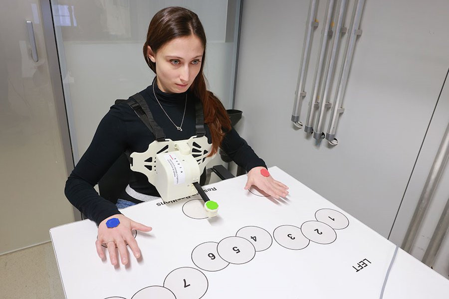 Согласно изданию Science News Explores, роботизированная рука крепится на грудь пользователя, и ее положение можно менять в зависимости от задач — она может располагаться над плечами или сбоку. Управление этой рукой осуществляется через дыхание: глубокий вдох заставляет руку выдвигаться вперед, а выдох — втягиваться. При этом обычное дыхание удерживает руку в текущем положении.