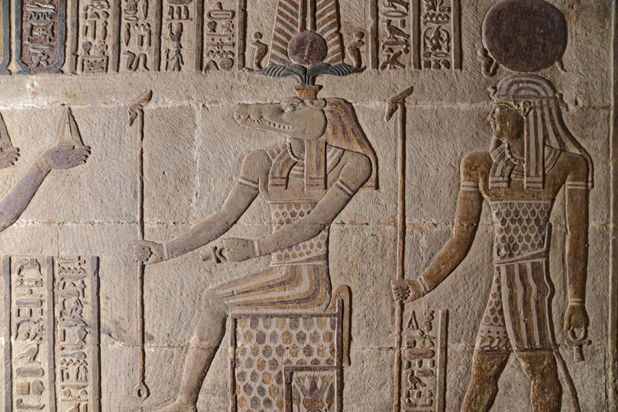 «Величайшим открытием этого года стали многочисленные расписные детали одежды царя и божеств Эсны, их короны и троны», — говорит Кристиан Лейтц. «Раньше мы вообще не могли их видеть из-за толстого слоя сажи на рельефах».