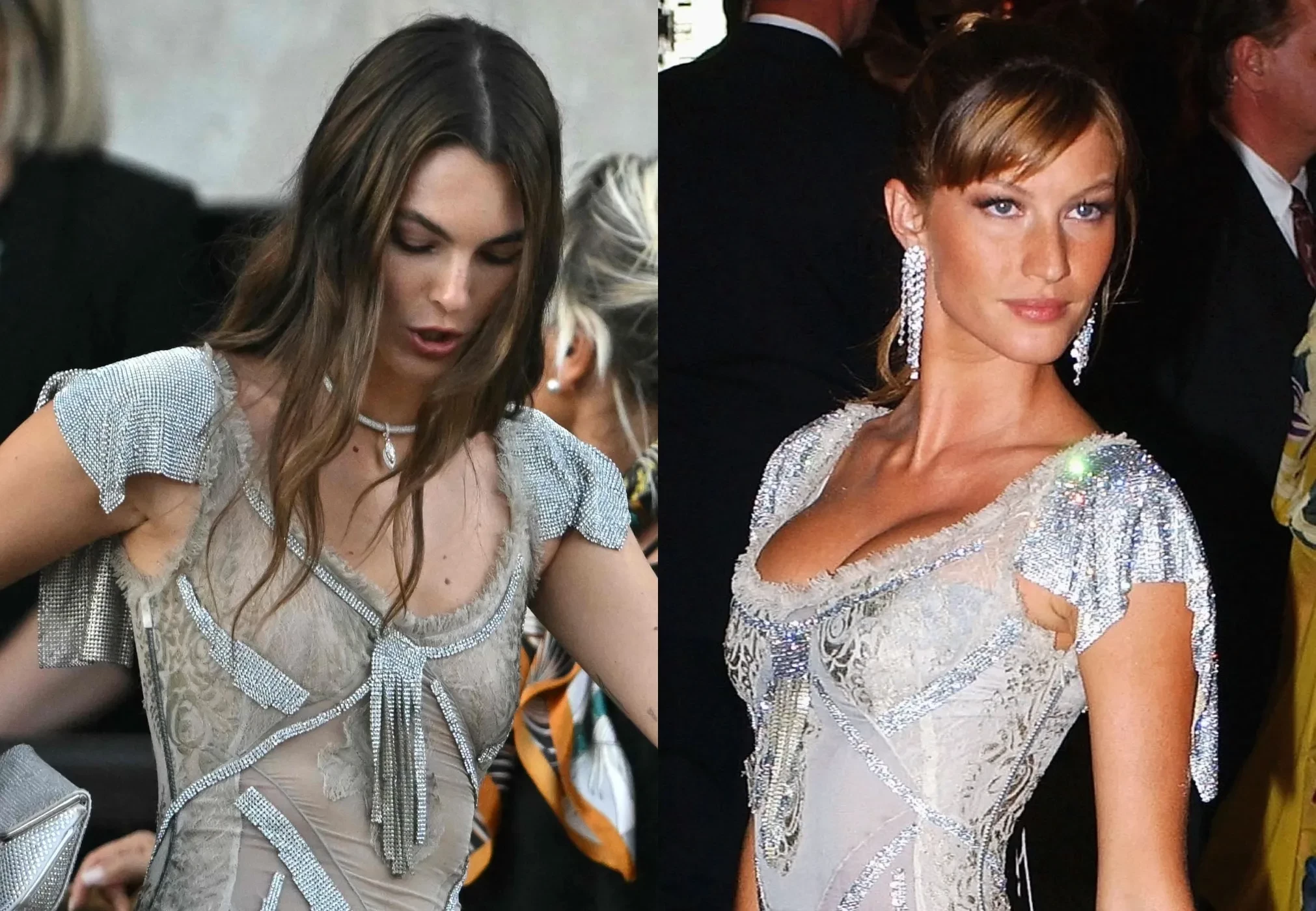 Виттория надела полупрозрачное серебристое платье Dolce & Gabbana, в котором Жизель пришла на Met Gala в 2003 году. На тот момент Бундхен уже три года встречалась с ДиКаприо.
