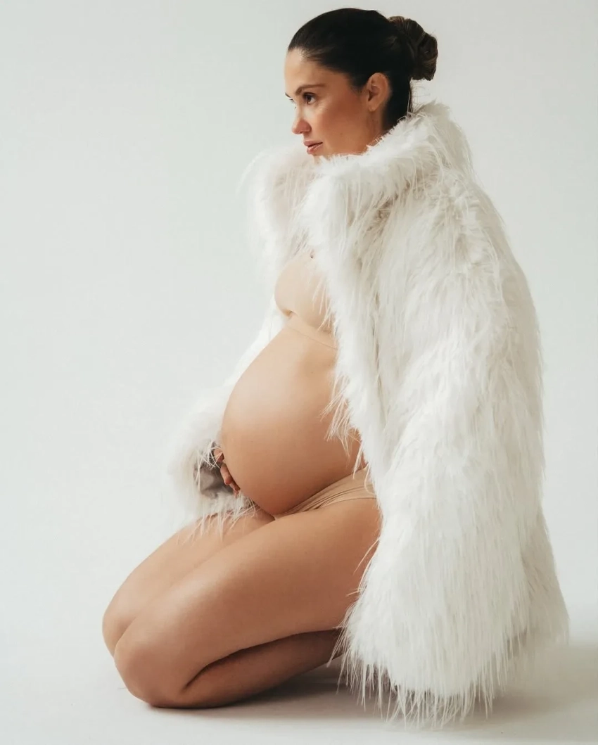 Беременная Агата Муцениеце снялась в фотосессии на фоне слухов о том, что у неё накладной живот