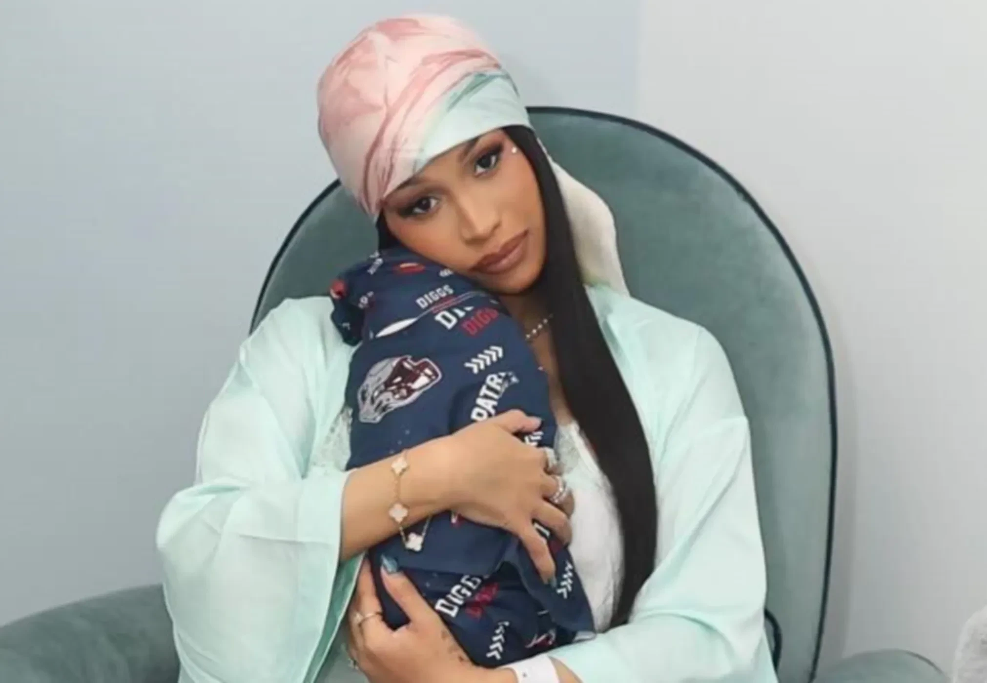 Карди Би, которая в этом месяце стала матерью в четвёртый раз, впервые показала новорожденного сына от футболиста Стефона Диггза. Снимками 33-летняя рэперша поделилась в инстаграме*.