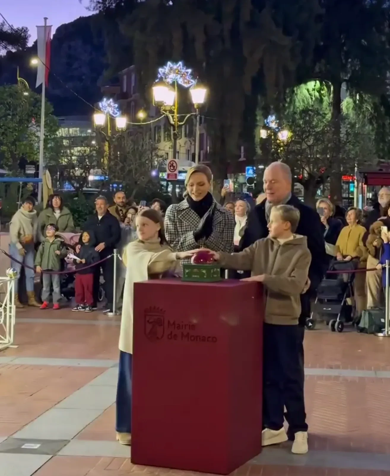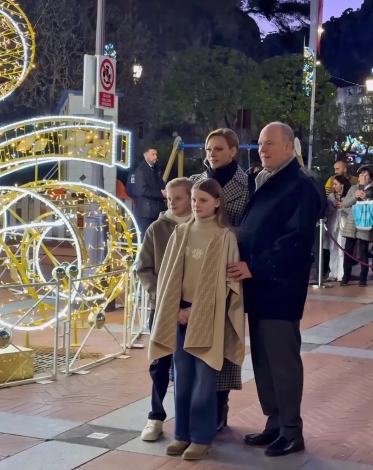 47-летняя Шарлен появилась на мероприятии в пальто в гусиную лапку, дополнив образ кожаной обувью и перчаткам. 10-летняя принцесса Габриэлла позировала в накидке Fendi, а её брат-близнец, наследный принц Жак — в толстовке Armani. Дети нажали на кнопку, включив иллюминацию по всему княжеству, что означает официальное начало праздничного сезона в Монако и сопутствующих ему мероприятий.