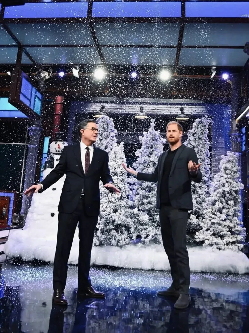 Принц Гарри появился в вечернем шоу Стивена Колбера и пошутил о том, что теперь у него есть связи в Голливуде благодаря жене Меган Маркл.