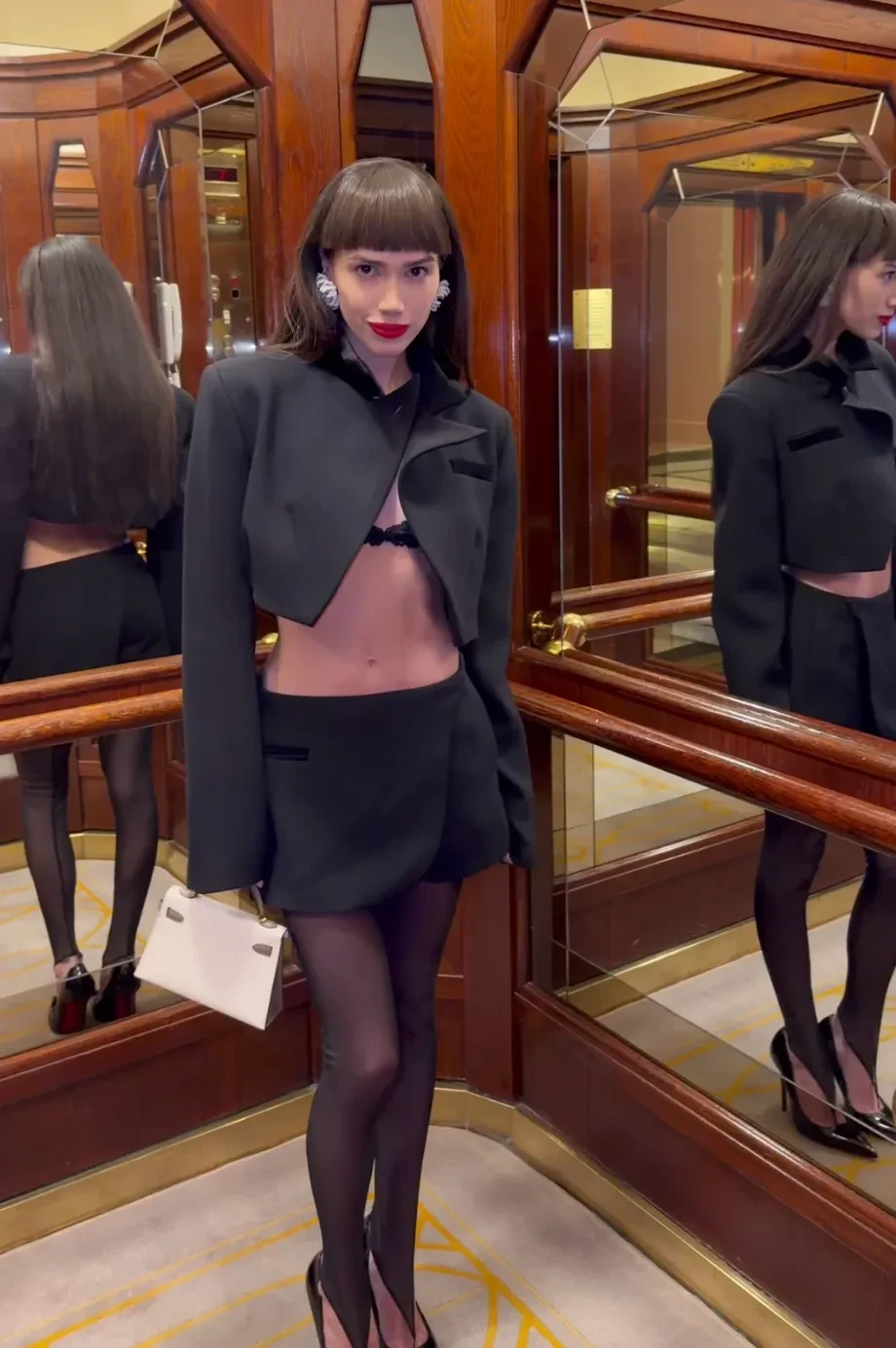 Перед мероприятием фигуристка отстригла короткую чёлку, а на вечере появилась в укороченном жакете с кружевным бюстгальтером и мини-юбке, дополнив образ красной помадой и туфлями на каблуках.