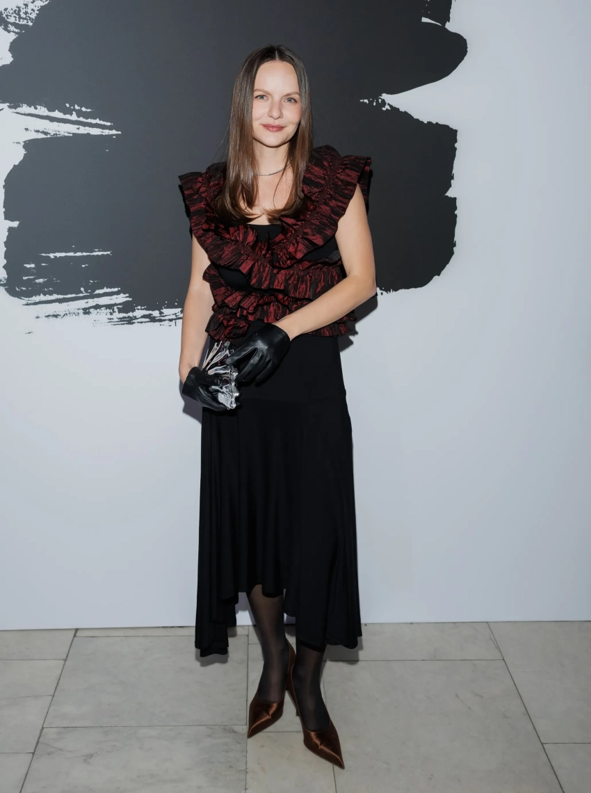 37-летняя экс-супруга Фёдора Бондарчука Паулина Андреева пришла на гала-вечер в топе-кейпе и брюках на высокой посадке, дополнив образ чёрными перчатками. 43-летняя Ксения Собчак позировала в платье с мехом и сумкой Hermes, а 27-летняя Алеся Кафельникова надела красное платье-комбинацию и колготки в сетку. Ещё одна бывшая жена Бондарчука, 56-летняя Светлана Бондарчук, выгуляла на мероприятии леопардовый топ с широкими джинсами.