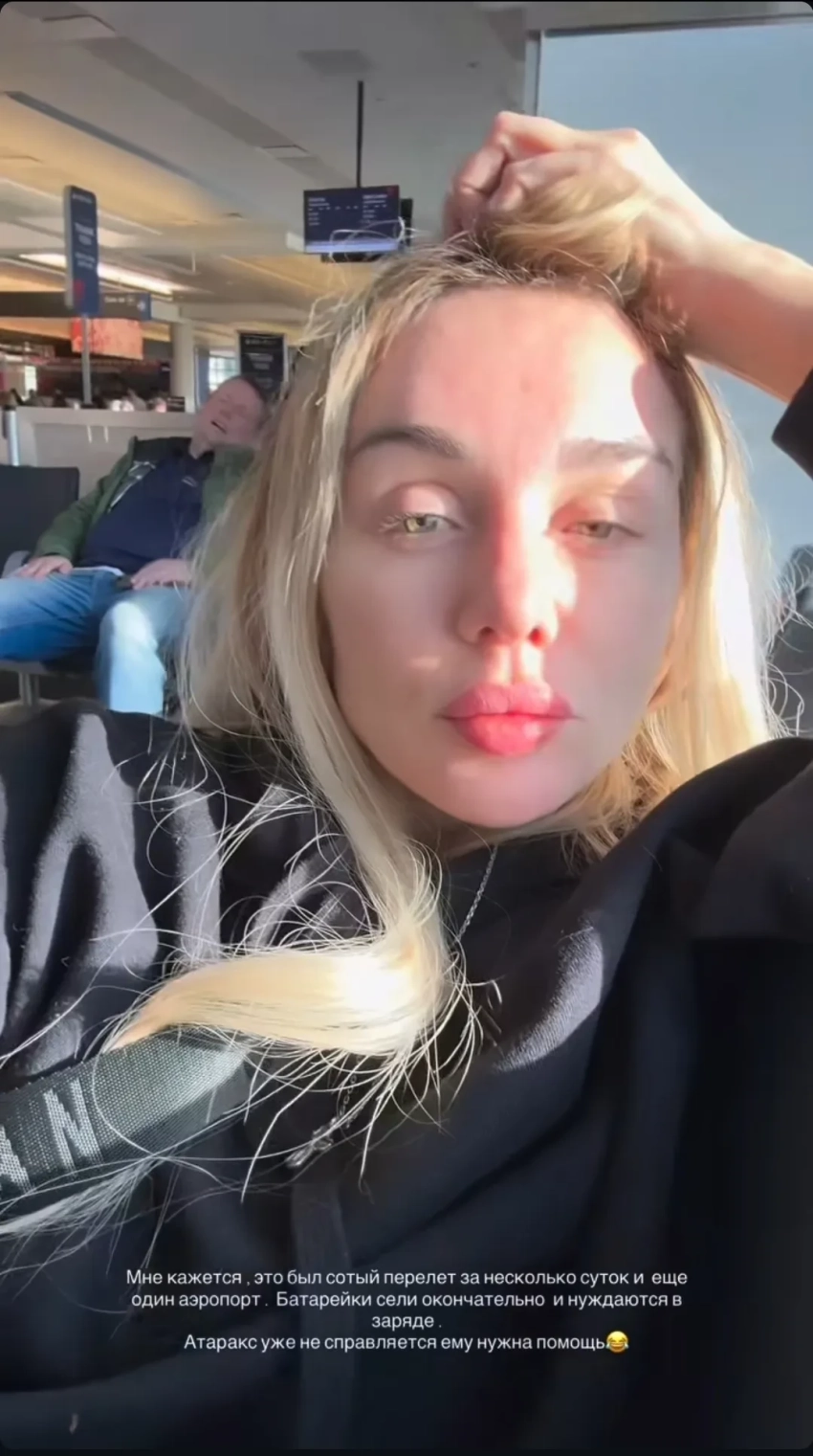 В своём инстаграме* певица опубликовала сторис*, где пожаловалась на то, что препараты больше не помогают ей. "Мне кажется, это был сотый перелёт за несколько суток и ещё один аэропорт. Батарейки сели окончательно и нуждаются в заряде. Атаракс уже не справляется, ему нужна помощь", — написала 42-летняя певица.
