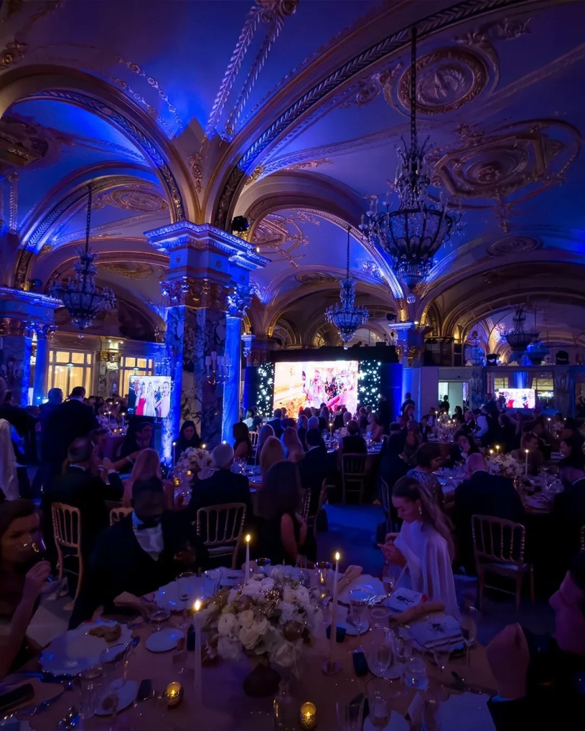 Для выхода в свет Шарлен выбрала белое платье-кейп с декольте и золотым поясом, дополнив образ серьгами с бриллиантами. Альбер II надел классический смокинг с бабочкой. На вечере прошёл аукцион, организованный Sotheby's, доходы от которого будут переданы в детский благотворительный фонд княгини Монако.