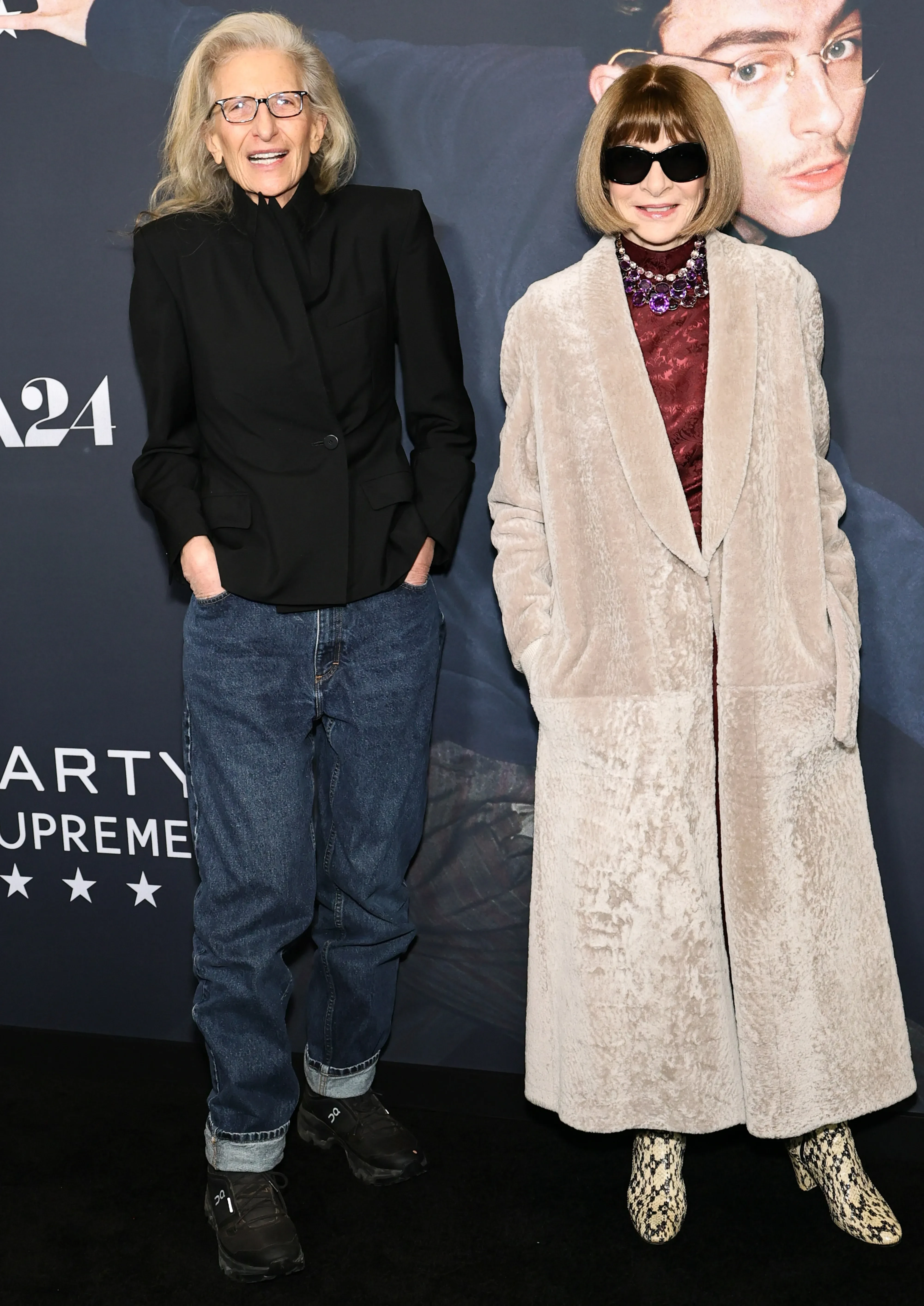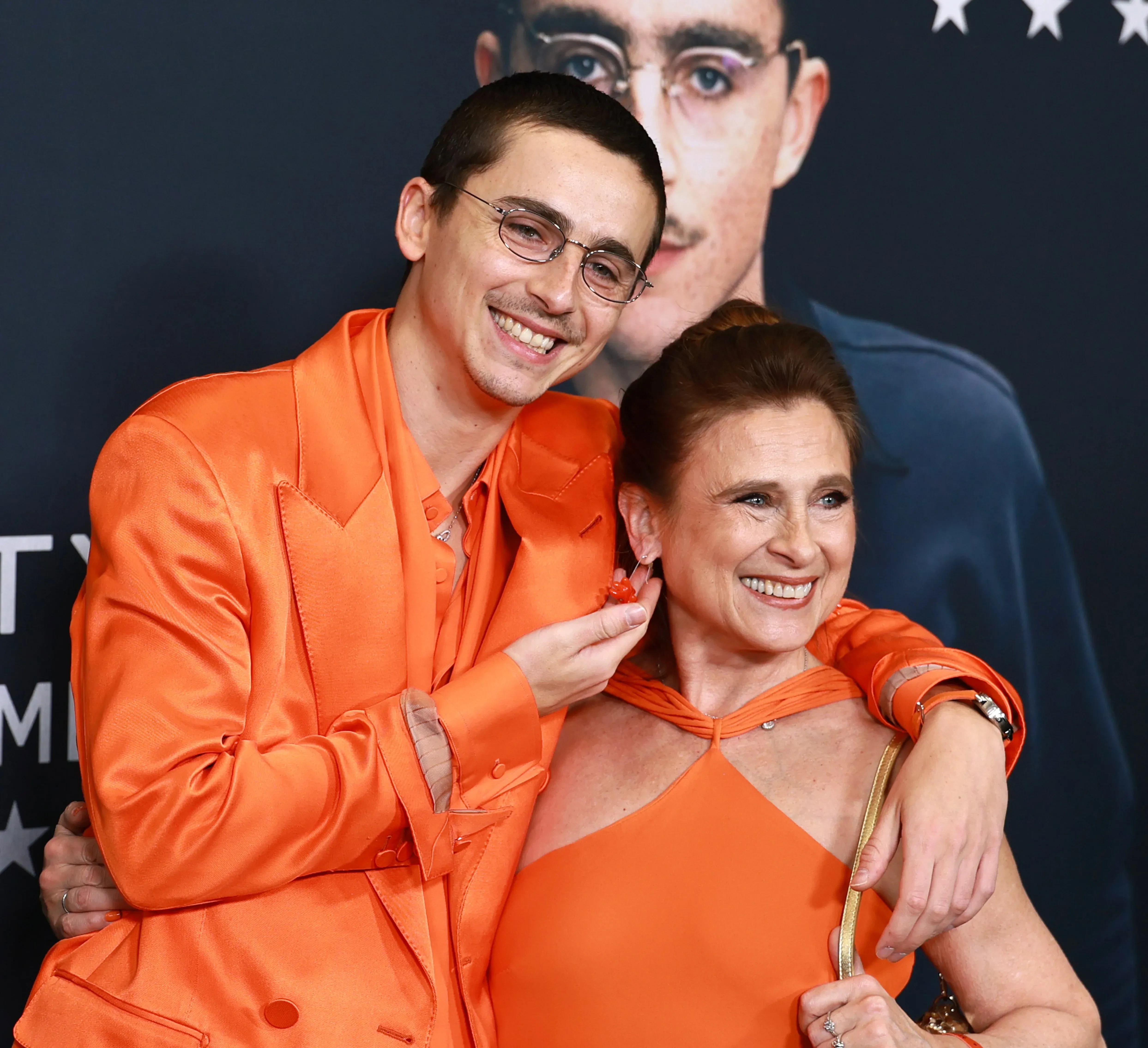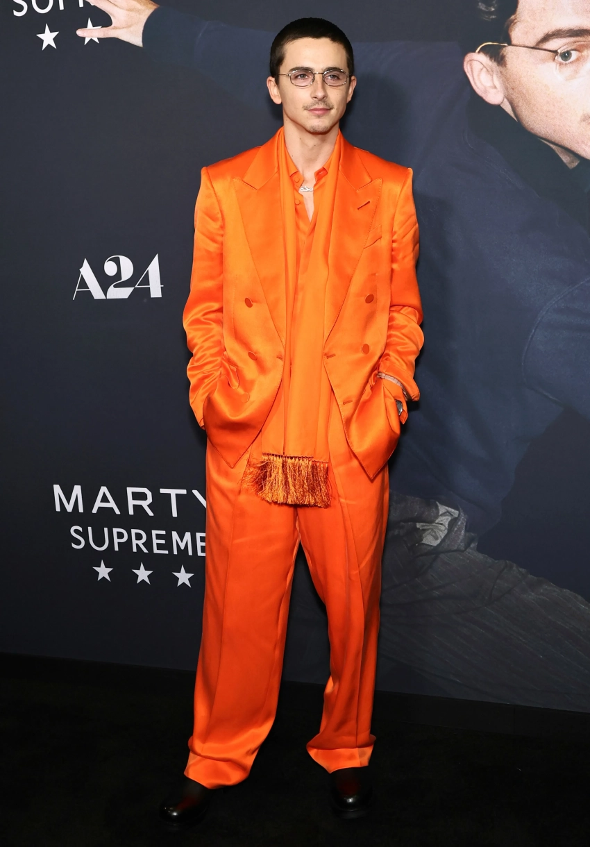 53-летняя Гвинет Пэлтроу позировала в чёрном платье Valentino, а её дочь Эппл надела архивное платье матери Calvin Klein, в котором Пэлтроу выходила в свет в 1996 году. 29-летний Тимоти Шаламе снова выбрал оранжевый парный образ (Tom Ford) — на этот раз не с возлюбленной Кайли Дженнер, а с матерью.
