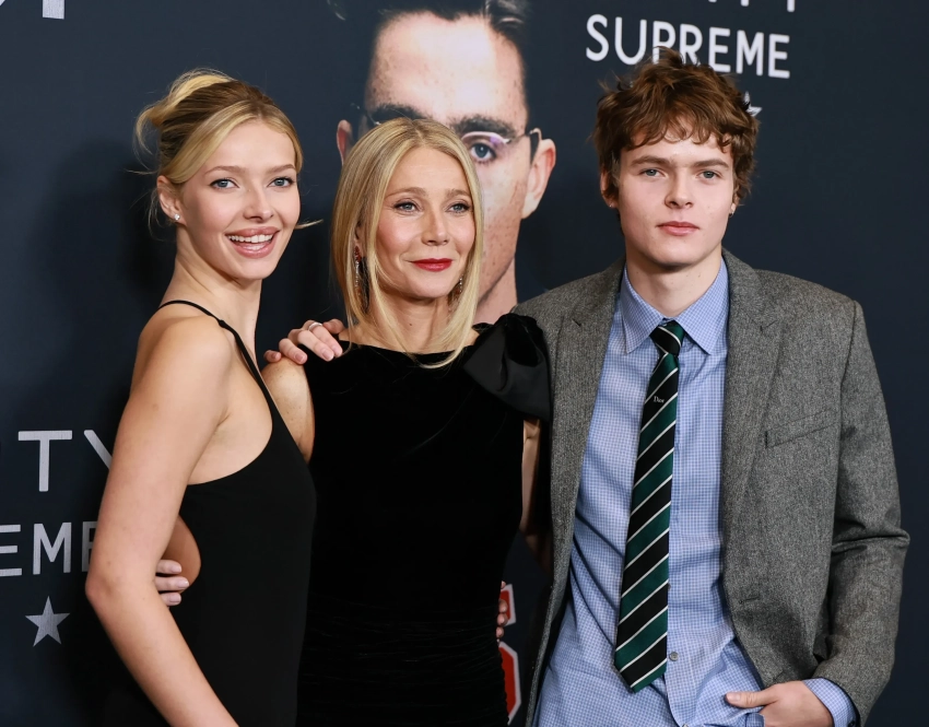 Гвинет Пэлтроу с детьми (впервые на красной дорожке), Тимоти Шаламе с матерью и сын Умы Турман на премьере фильма "Марти Великолепный"