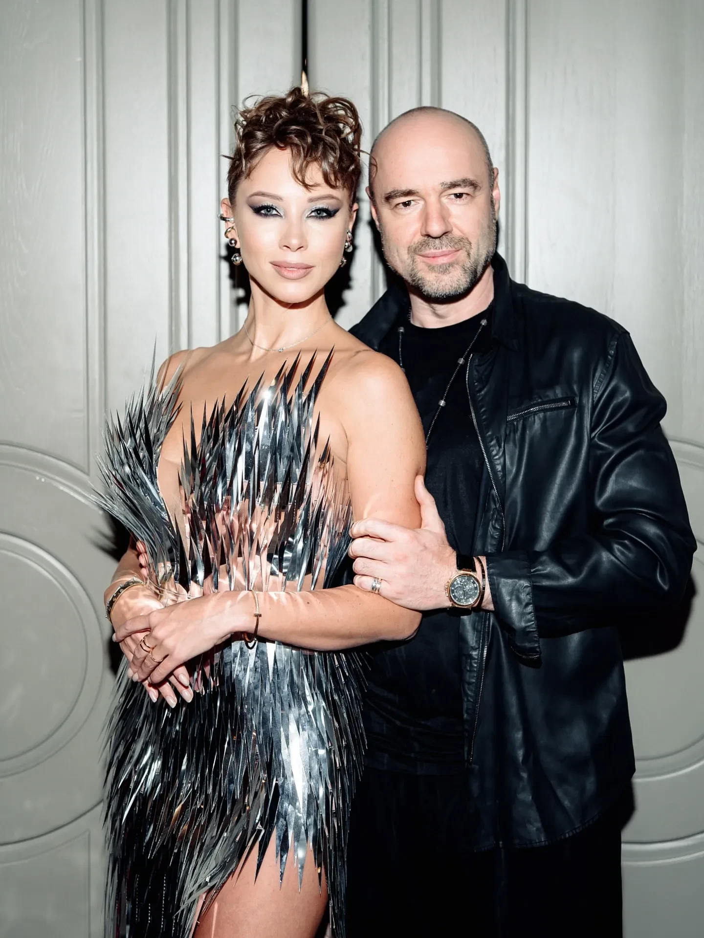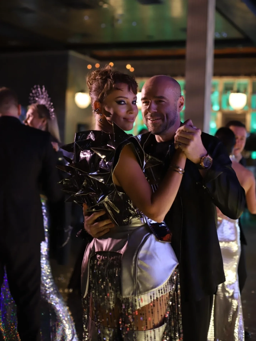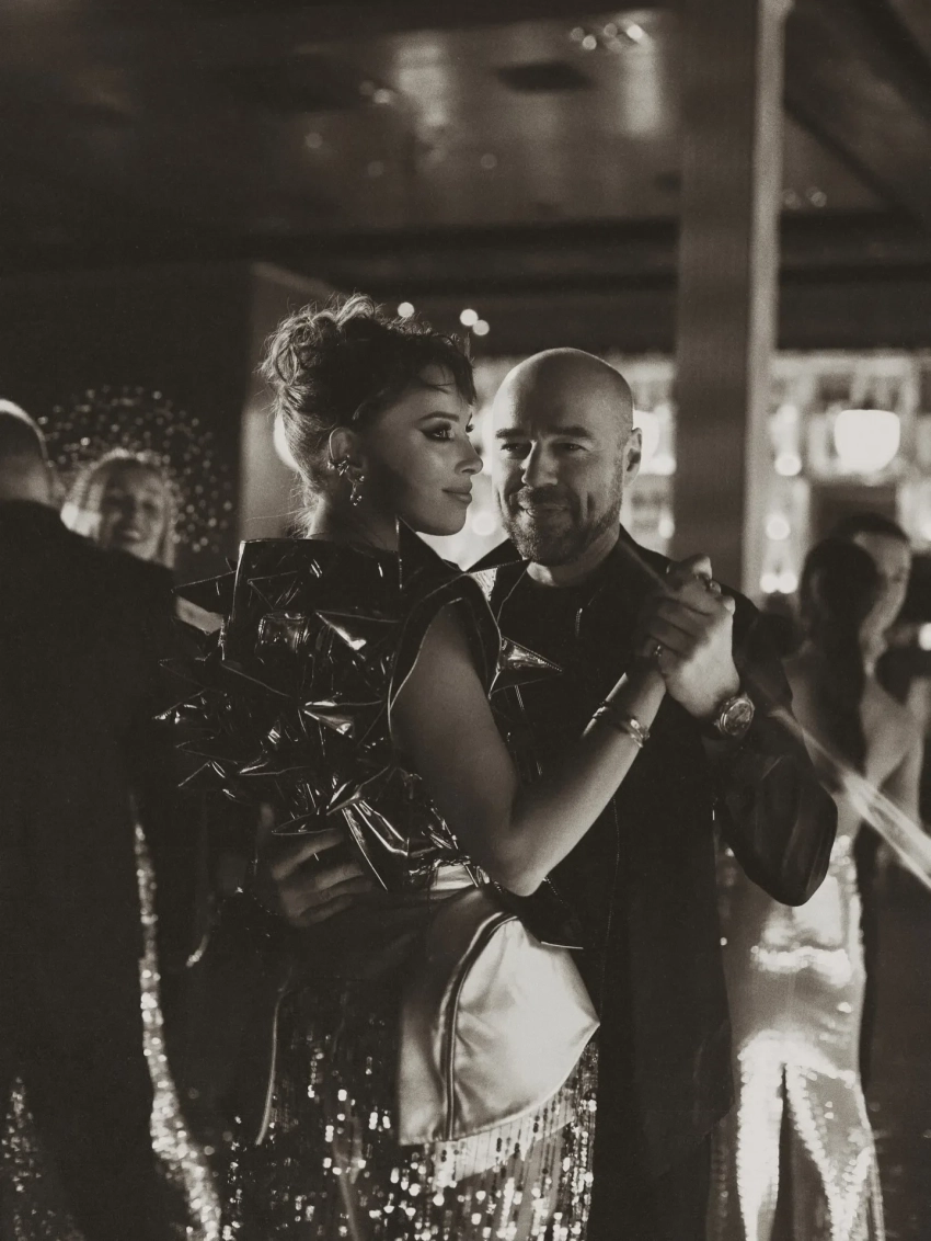 Снимки были сделаны на новогодней вечеринке женского клуба Дибровой в элитном ресторане на Рублёвке. На них влюблённые позируют на фоне белых дверей и зеркальной фотозоны, визуально перекликающейся с платьем 36-летней хозяйки вечера. Фотограф также запечатлел Полину и Романа в обнимку во время медленного танца.