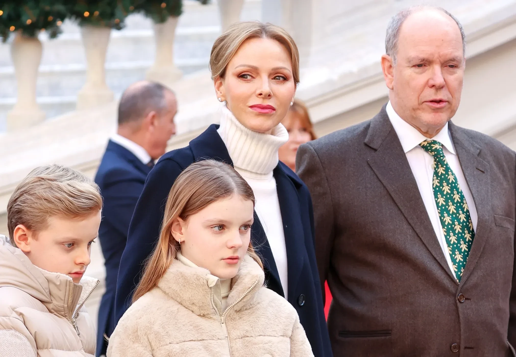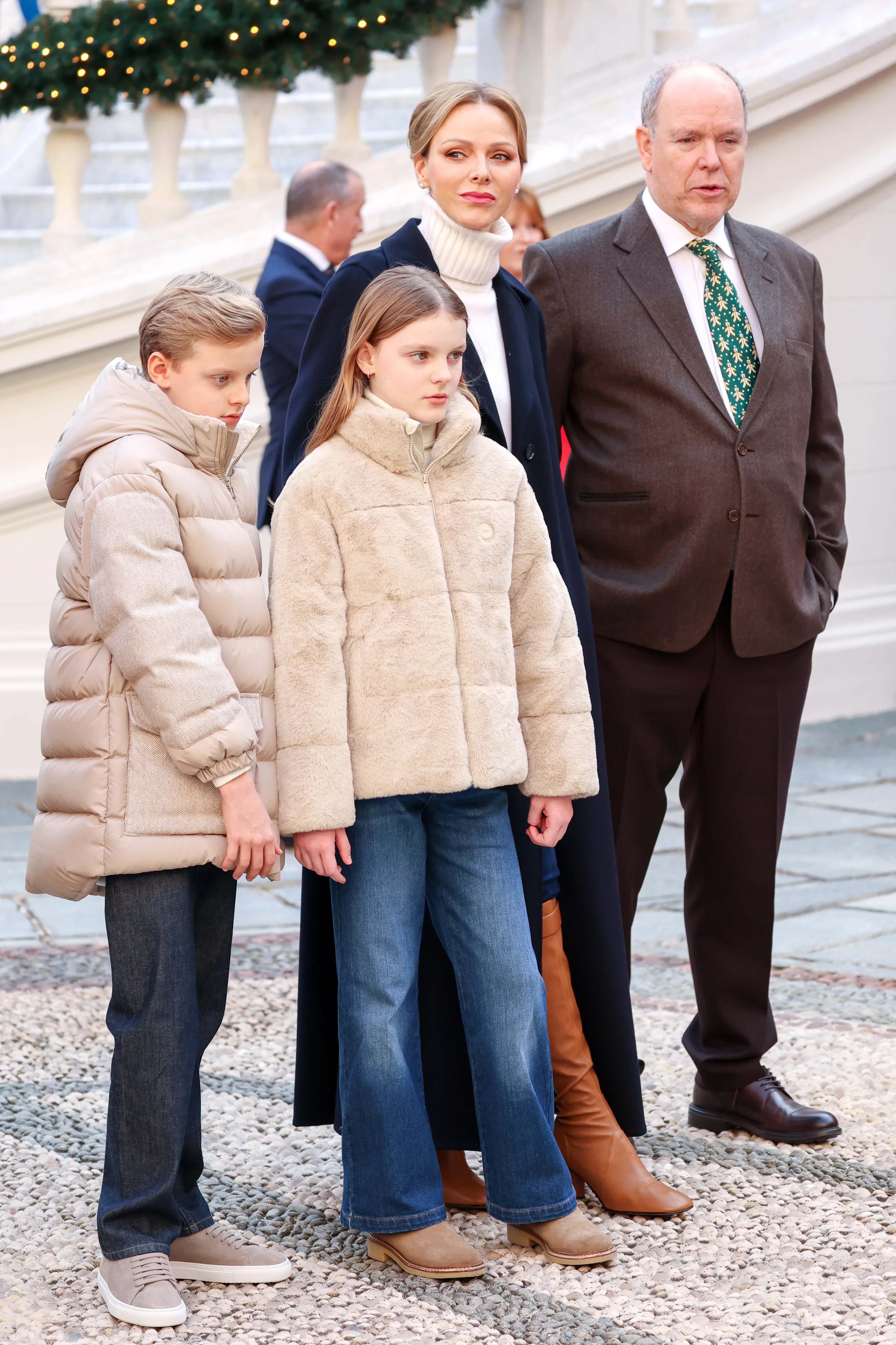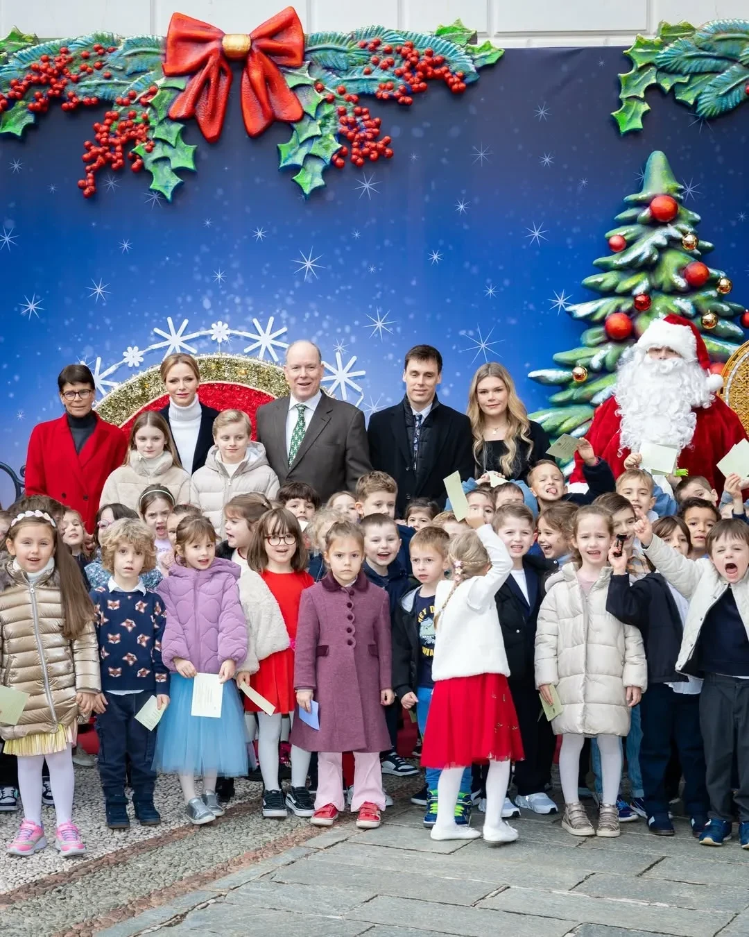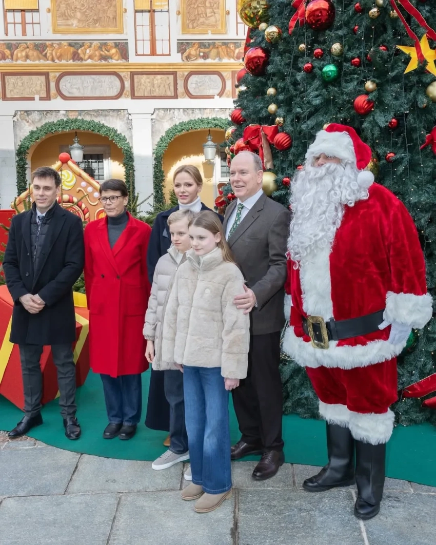 Княгиня Монако Шарлен и князь Альбер II с детьми и членами монаршей семьи посетили рождественскую ёлку в Княжеском дворце