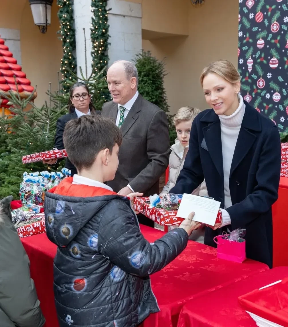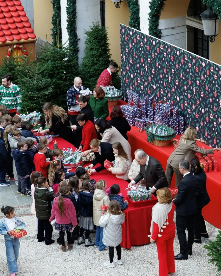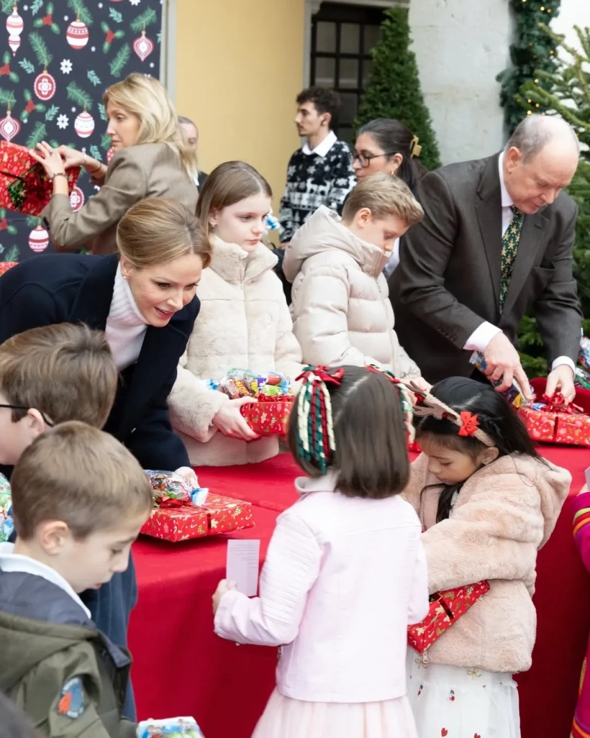 Князь Альбер II и княгиня Шарлен с детьмиКнягиня Шарлен и принцесса ГабриэллаПринц ЖакКнязь Альбер II и княгиня Шарлен с сыномКнягиня ШарленКнязь Альбер II, принцесса Габриэлла, Луи ДюкрюэПринц Жак и принцесса ГабриэллаЛуи Дюкрюэ, принцесса Стефания и княгиня ШарленКамилла Готтлиб, Луи Дюкрюэ, принцесса СтефанияНа рождественскую ёлку, которая ежегодно проходит во дворе Княжеского дворца, пришли несколько сотен детей от 5 до 12 лет. Они встретились с Санта-Клаусом, посмотрели представления, угостились сладостями и получили подарки из рук членов монаршей семьи. Традиция раздавать детям рождественские подарки зародилась в 1949 году, когда на престол вступил отец Альбера II и принцессы Стефании, князь Ренье III.