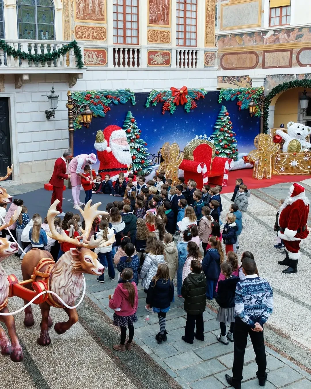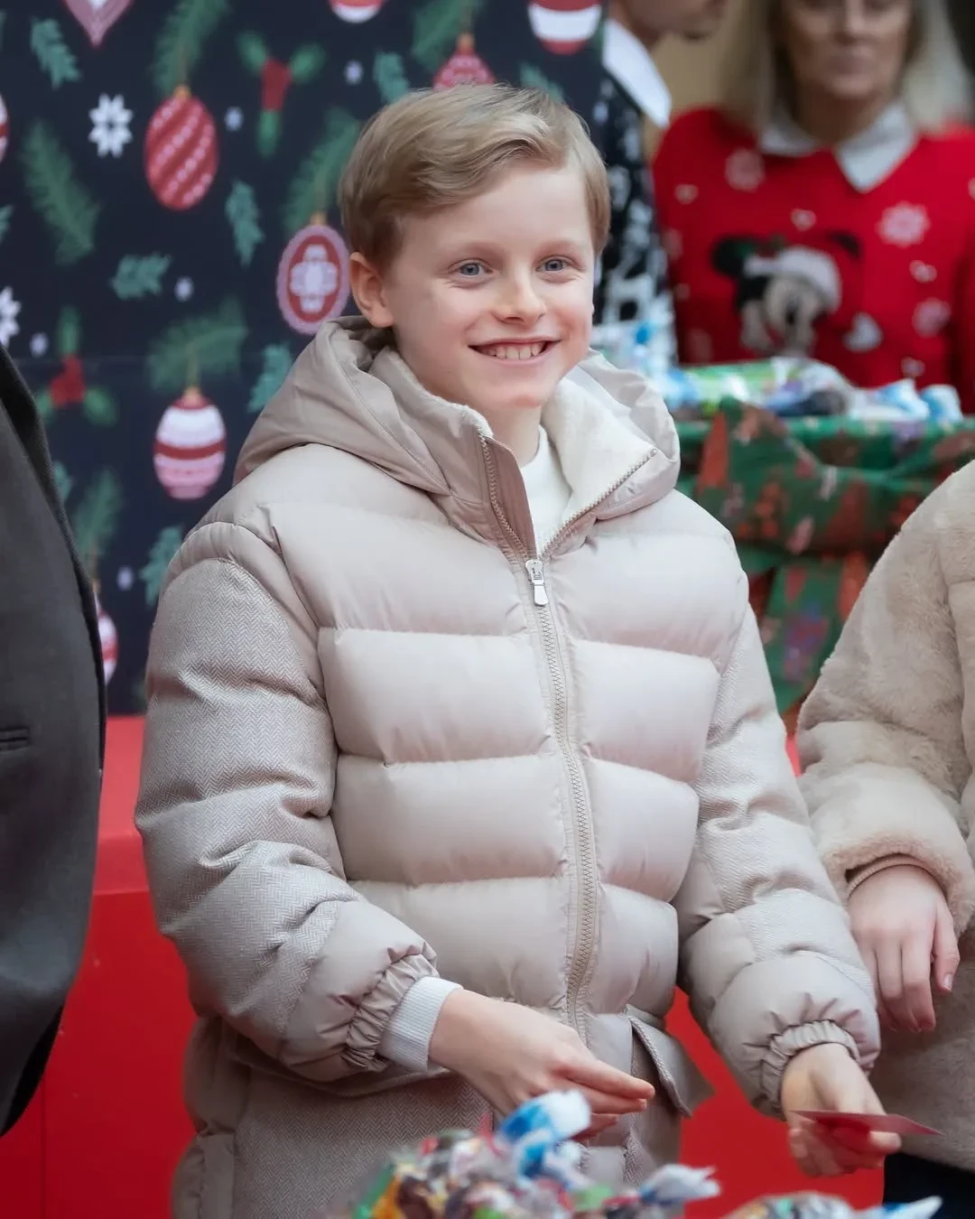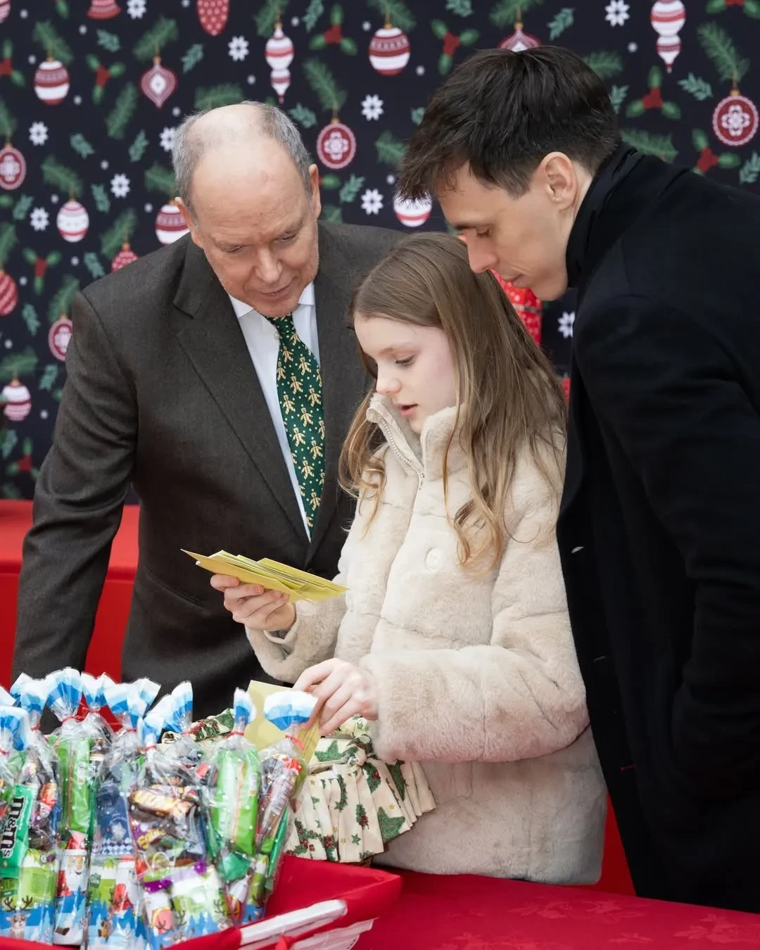 Князь Альбер II и княгиня Шарлен с детьмиКнягиня Шарлен и принцесса ГабриэллаПринц ЖакКнязь Альбер II и княгиня Шарлен с сыномКнягиня ШарленКнязь Альбер II, принцесса Габриэлла, Луи ДюкрюэПринц Жак и принцесса ГабриэллаЛуи Дюкрюэ, принцесса Стефания и княгиня ШарленКамилла Готтлиб, Луи Дюкрюэ, принцесса СтефанияНа рождественскую ёлку, которая ежегодно проходит во дворе Княжеского дворца, пришли несколько сотен детей от 5 до 12 лет. Они встретились с Санта-Клаусом, посмотрели представления, угостились сладостями и получили подарки из рук членов монаршей семьи. Традиция раздавать детям рождественские подарки зародилась в 1949 году, когда на престол вступил отец Альбера II и принцессы Стефании, князь Ренье III.