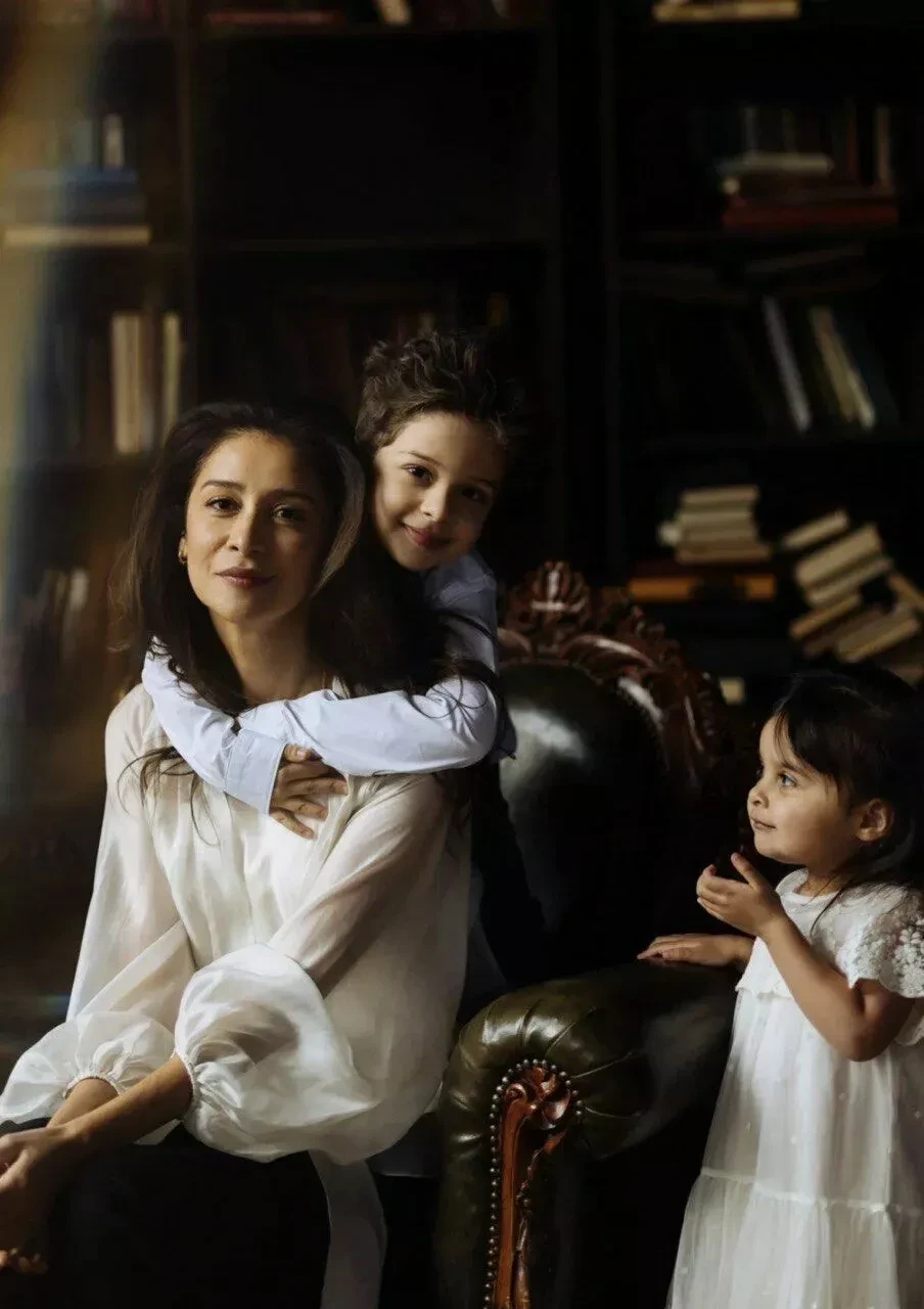 45-летняя Равшана Куркова поделилась в инстаграме* снимками из новогодней семейной фотосессии. На фото актриса позирует вместе со своими детьми: пятилетним сыном Гаспаром и двухлетней дочерью Самирой.