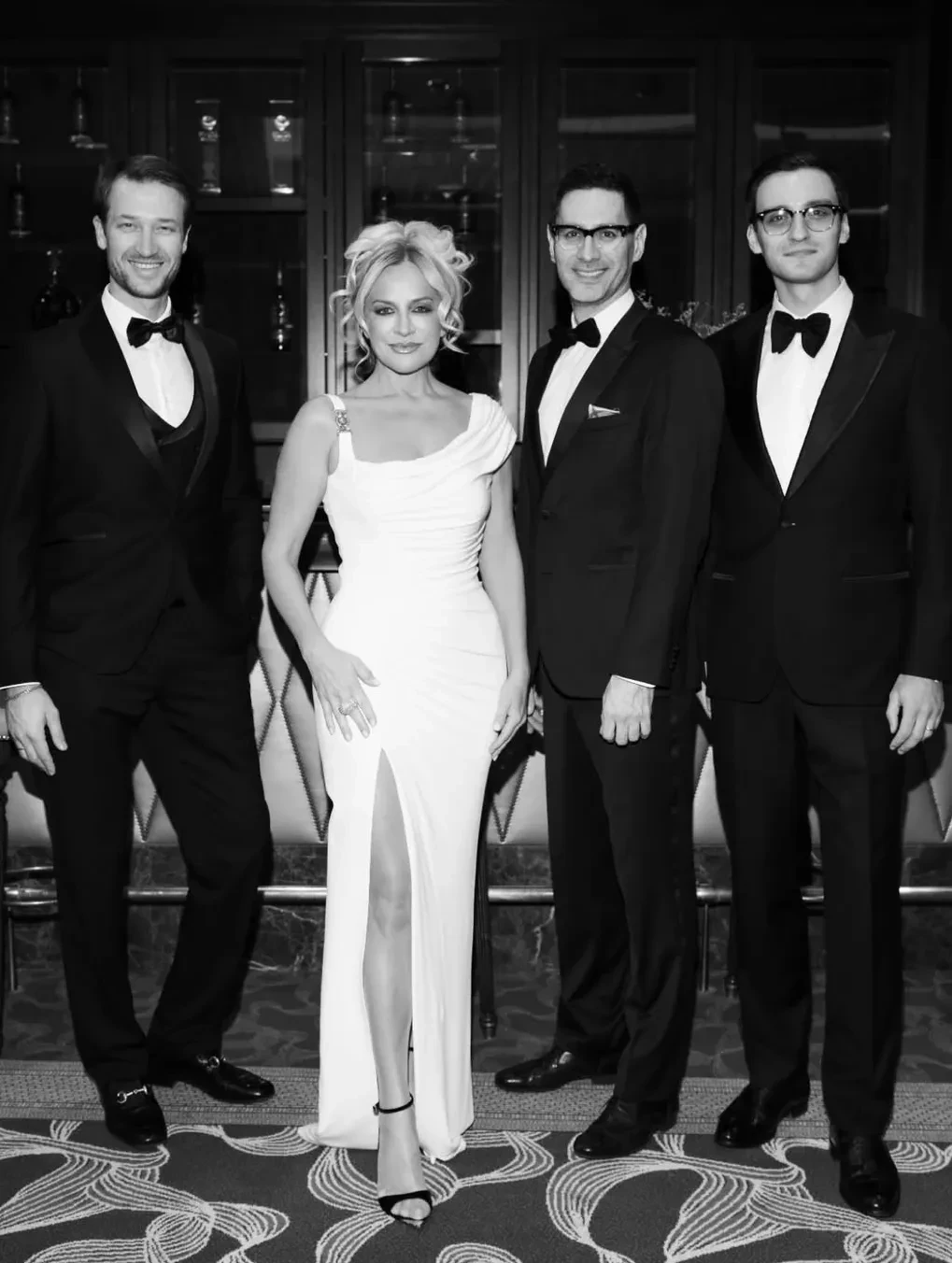 Виктория ШеляговаПосле этого Виктория переоделась в лимонное платье от Versace, и ей вынесли четырёхъярусный торт, украшенный живыми розами. Задув свечи, она пригласила всех спуститься на минус первый этаж в клуб "Амбассадор", где и началось основное веселье: музыка от ведущего и диджея Владимир Абрамкин, а также самих Киркорова, Жасмин и Чеботиной, несколько фотозон и праздничный фуршет.