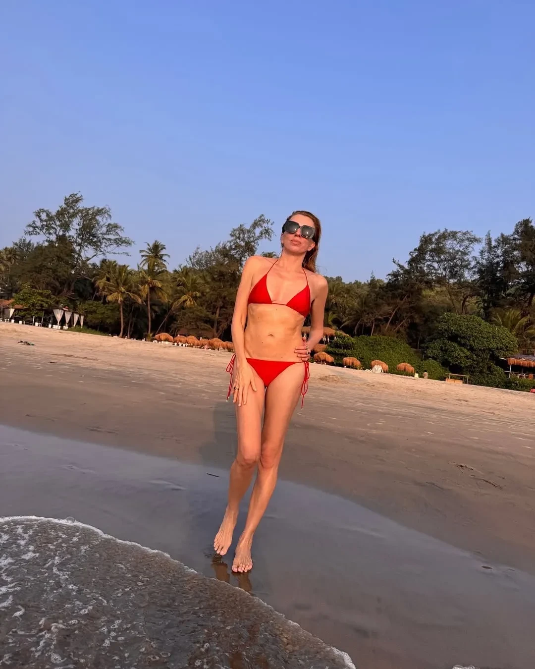 57-летняя Светлана Бондарчук снялась в красном бикини на пляже