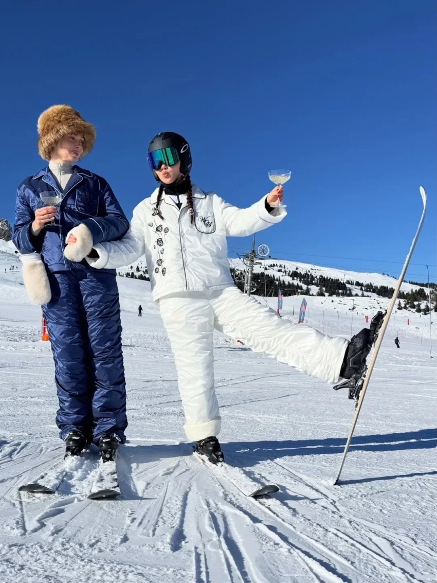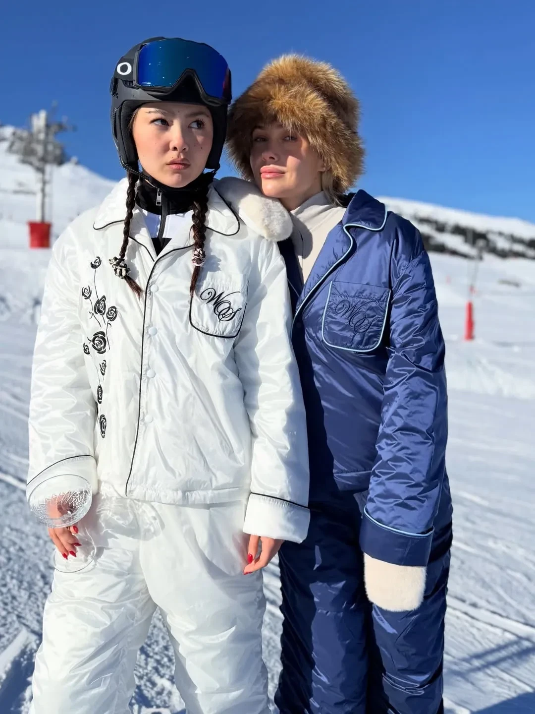 Вместе с Карпуть в Куршевеле отдыхает её старшая дочь Соня от супруга Павла Тё. Мать и дочь тоже сфотографировались на склоне в лыжных костюмах и с бокалами.