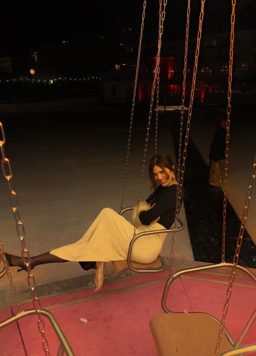 Жукова опубликовала серию снимков, на которых она обнимает дочь, катается с ней и подругами на знаменитой карусели авторства художника Карстена Хеллера, установленной около местного отеля Klum, а также отдыхает на вечеринке. На фото также запечатлены: сестра Ставроса Ниархоса Евгения, жена их двоюродного брата Николаса Ниархоса — Малу Пиккола-Ниархос, а также Беатриче Борромео — жена Пьера Казираги, сына принцессы Монако Каролины.