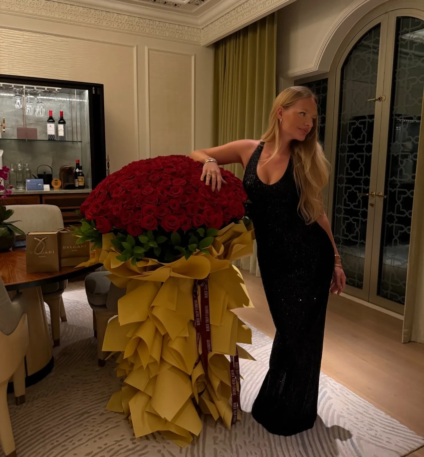 Именинница, которая выбрала для вечера вечернее чёрное платье в пол с пайетками и декольте, позировала для фото с подарками: огромным букетом алых роз и брендированными пакетами ювелирных украшений Bvlgari. В подборку Пескова также добавила несколько снимков с мужем Даниилом Ромашовым, за которого она, по сообщениям СМИ, вышла замуж в 2024 году.