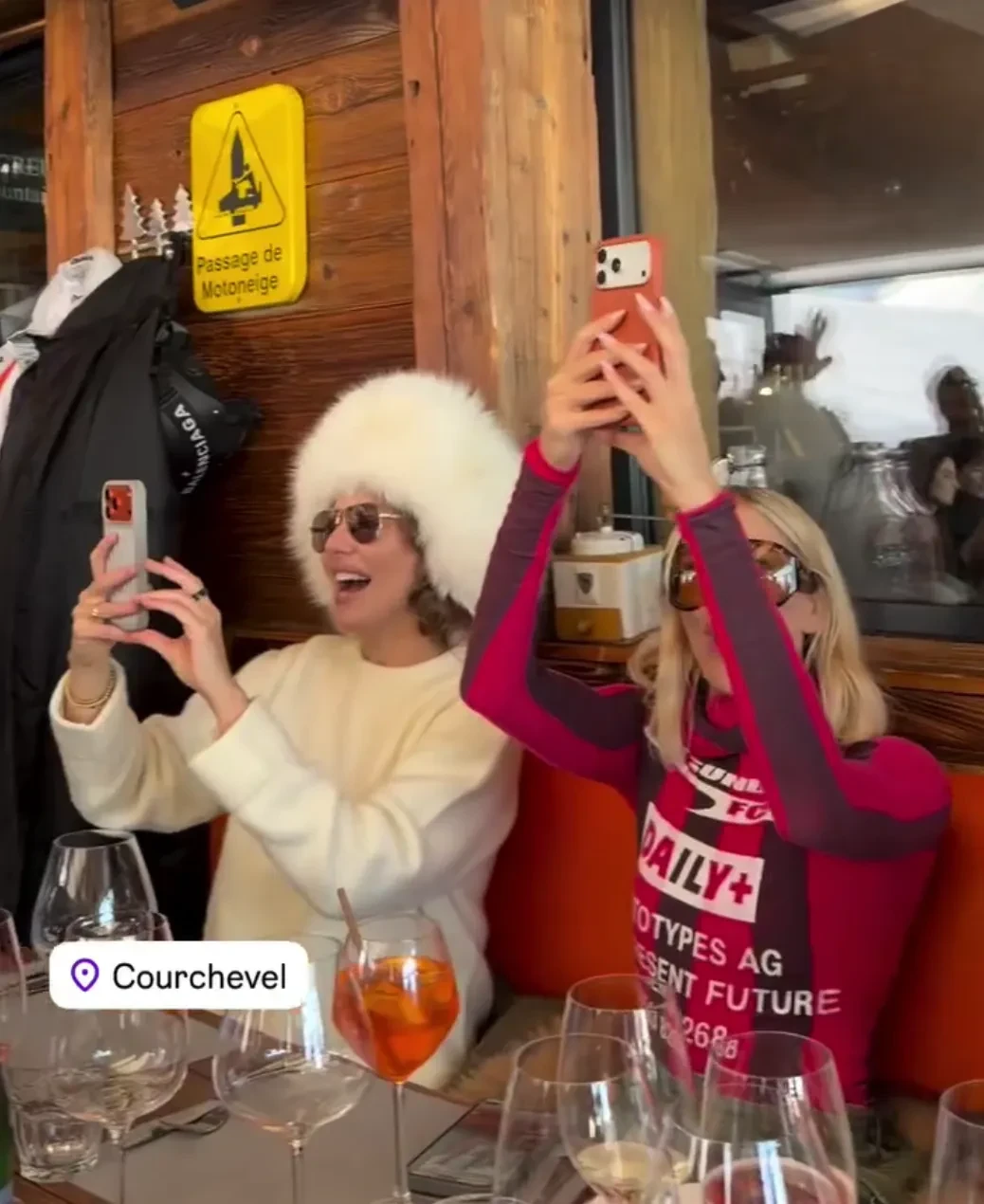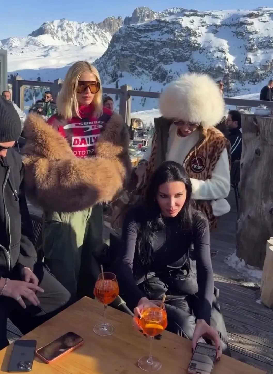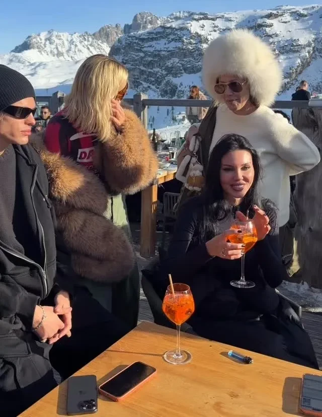 На второй день тура бренд устроил для звёздных гостей светский обед. 44-летняя Собчак пришла сразу по прилёте — в леопардовом жилете и белой меховой шапке, а 39-летняя Елена Перминова появилась в красном горнолыжном костюме и шубе. Гостей встречали местные музыканты, а среди угощений были устрицы и коктейли.