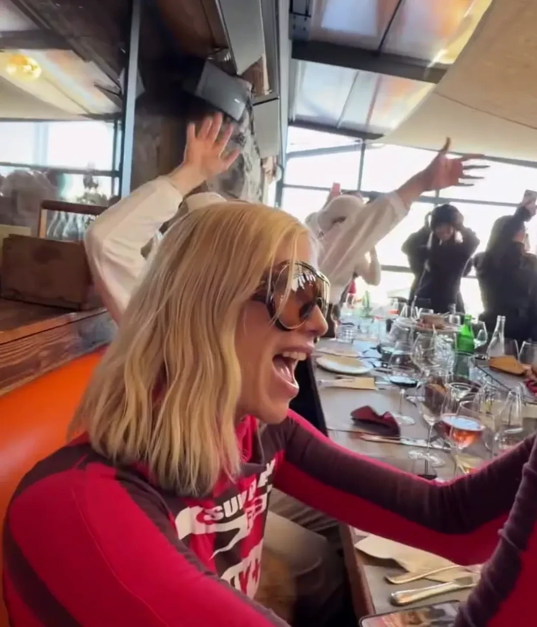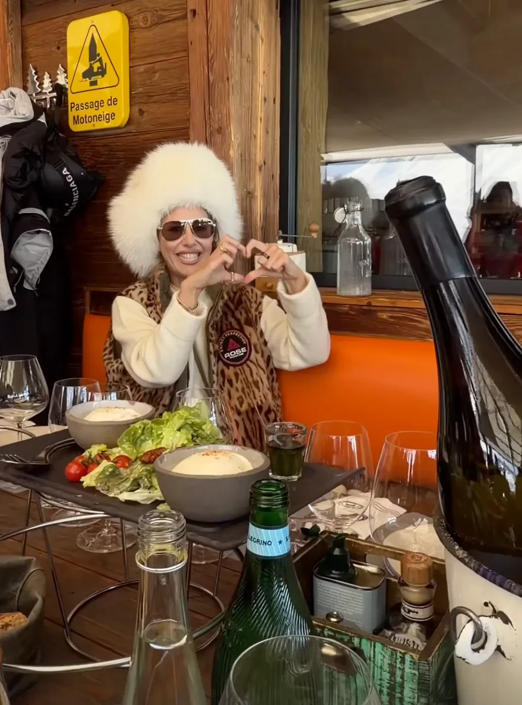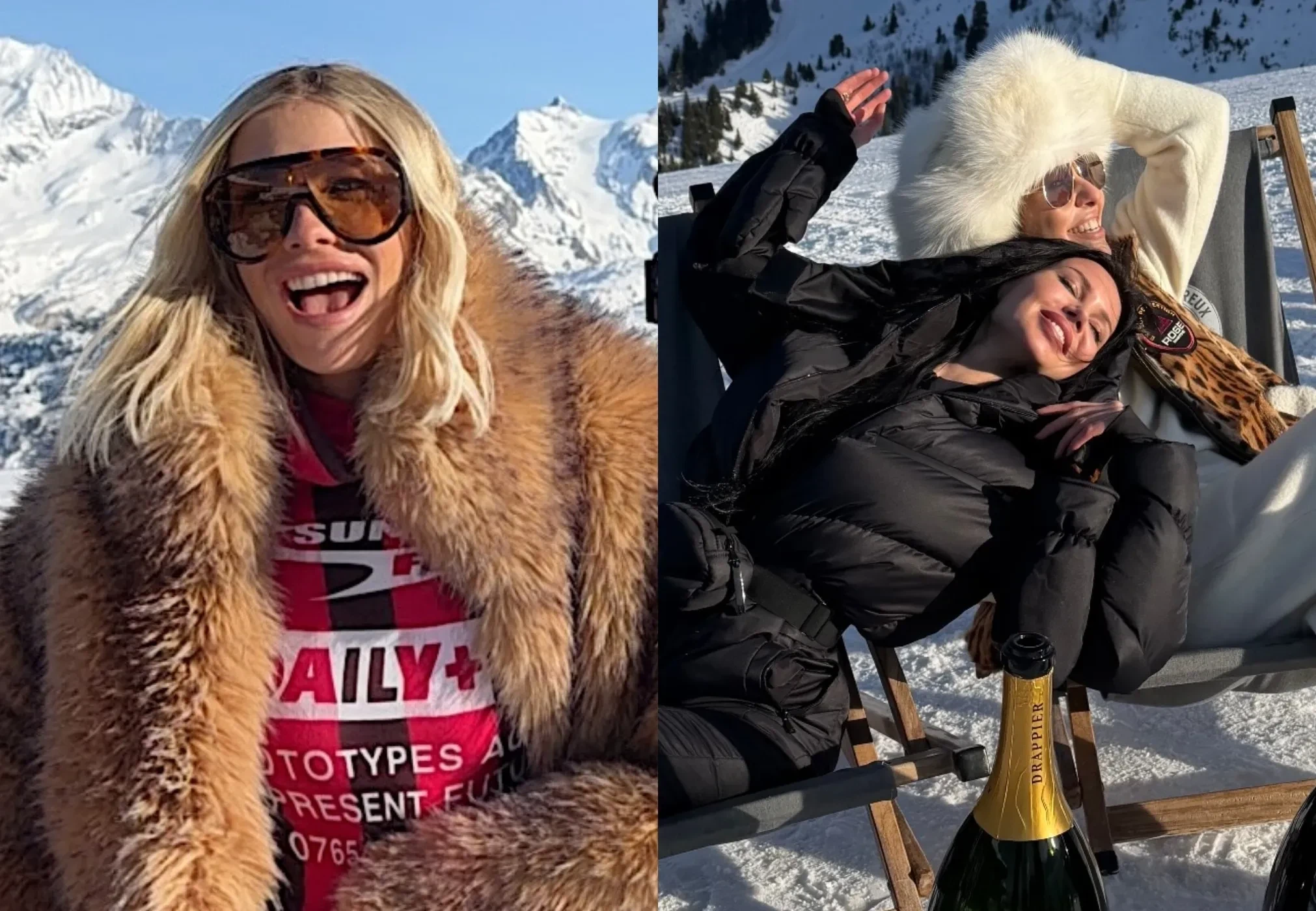 На второй день тура бренд устроил для звёздных гостей светский обед. 44-летняя Собчак пришла сразу по прилёте — в леопардовом жилете и белой меховой шапке, а 39-летняя Елена Перминова появилась в красном горнолыжном костюме и шубе. Гостей встречали местные музыканты, а среди угощений были устрицы и коктейли.
