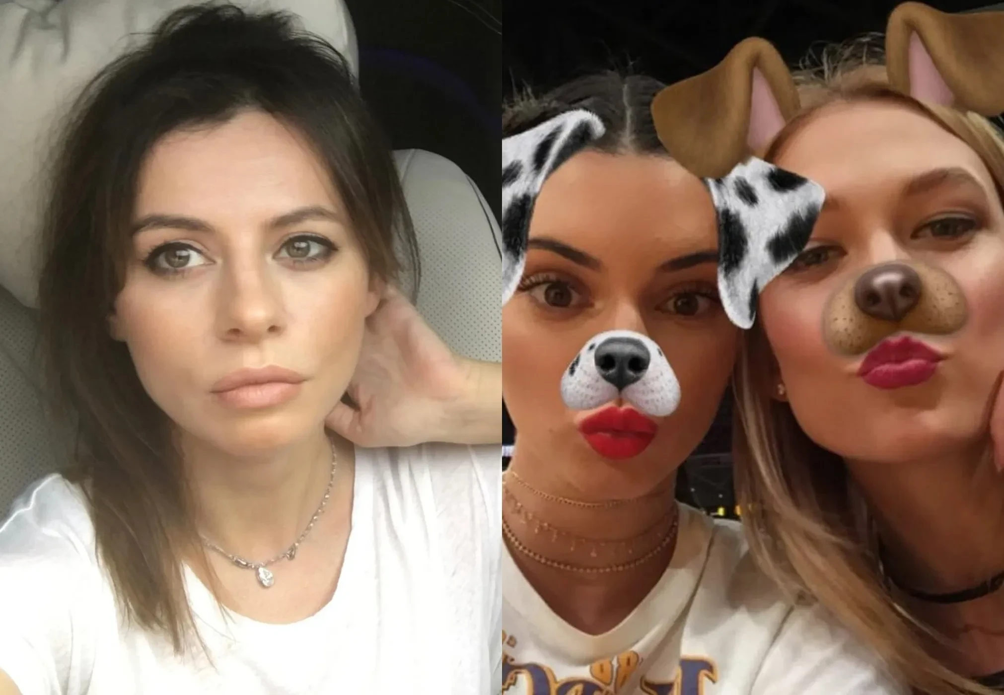 Карли Клосс выложила снимок с Кендалл Дженнер времён популярности приложения Snapchat — с фильтром собаки на лице, который помнят многие пользователи соцсетей того времени. 43-летняя Наталья Давыдова, которая сейчас снимается в шубе и меховых трусах, ещё в 2016 году примеряла на себе различные модные образы.