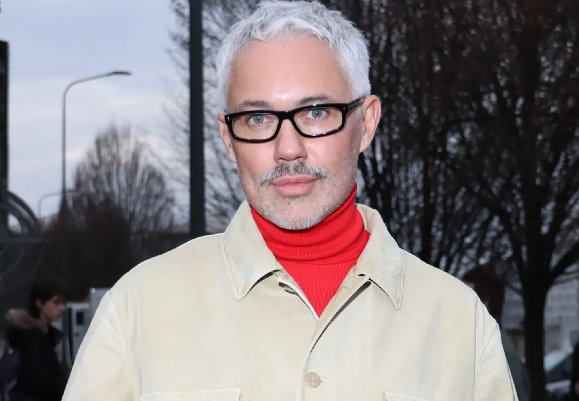 27-летняя звезда сериала "Очень странные дела" Майя Хоук пришла на шоу в сером пальто и шортах, а её 24-летний брат Левон позировал в кожаном пиджаке и голубой водолазке. Александр Рогов примерил тотал-лук Prada из летней коллекции, а Оксана Бондаренко выбрала образ в серых оттенках.