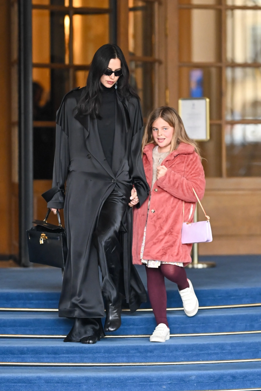 Шейк, которой недавно исполнилось 40 лет, засняли с дочерью на выходе из отеля Ritz. Перед камерами модель появилась в шёлковом жакете в сочетании с шёлковыми брюками в тон и ботинками Maison Margiela Tabi. Свой образ она завершила чёрной сумкой Hermеs Kelly.