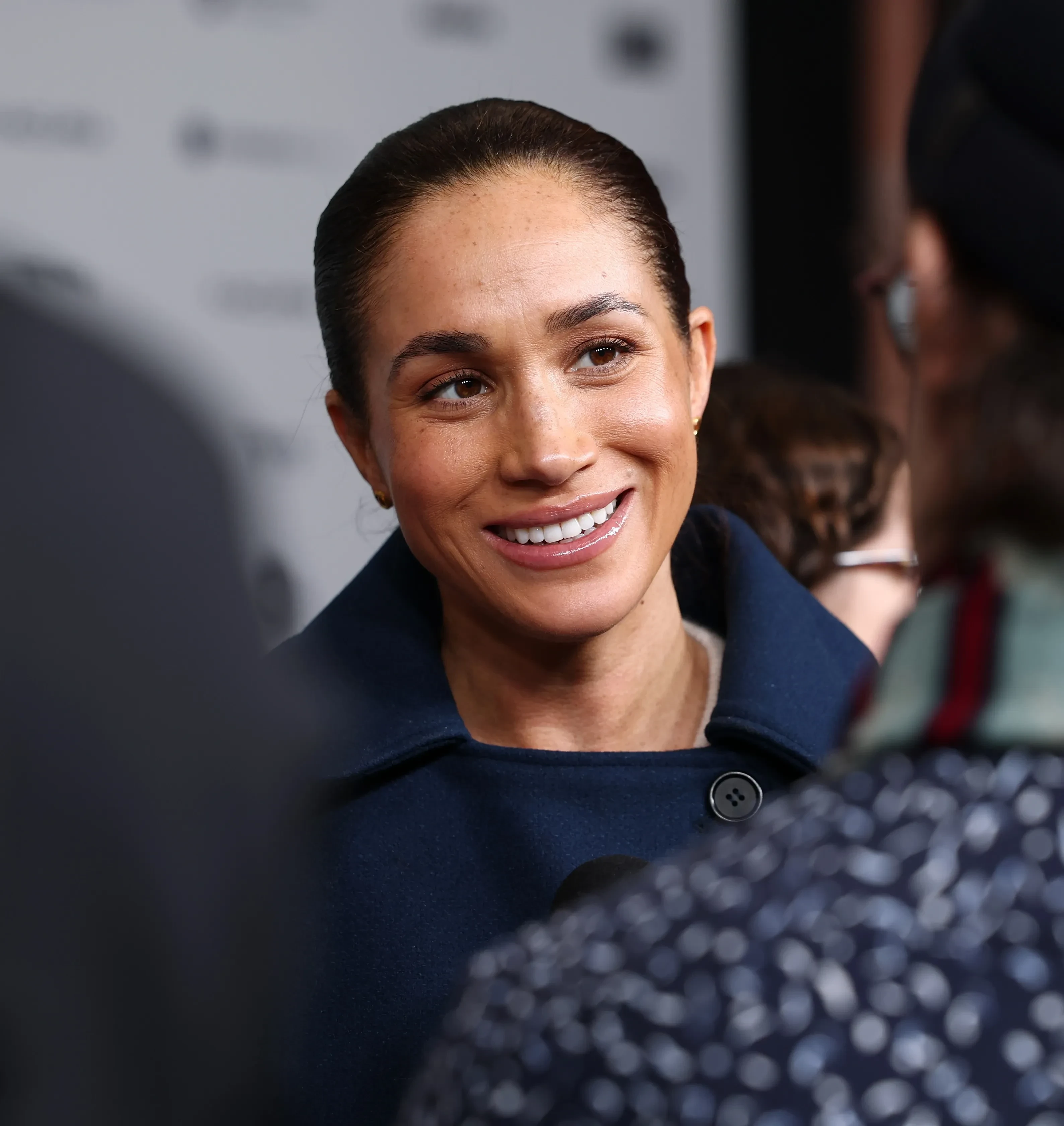 44-летняя Маркл и 41-летний принц Гарри позировали на дорожке вместе с режиссёром ленты Алисой Нахмиас. Меган надела синее пальто, а под ним был белый свитер. Гарри пришёл в чёрной куртке и джинсах.