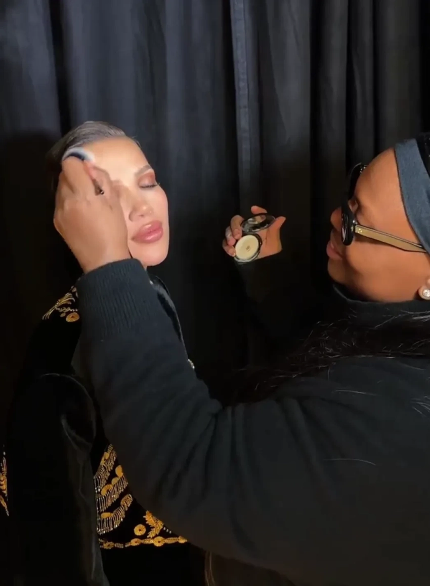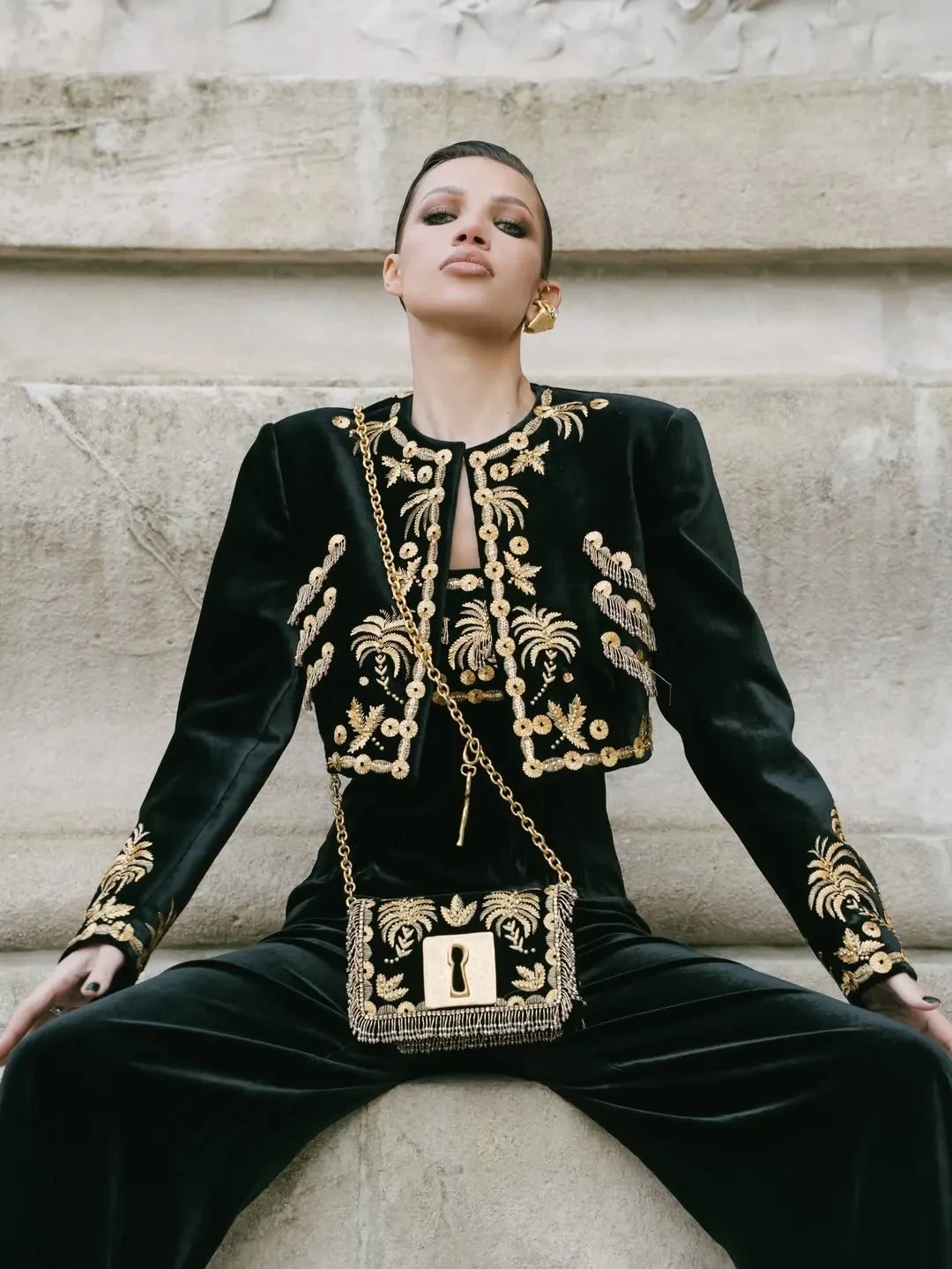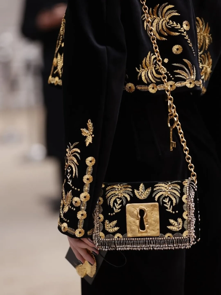 31-летняя Шевчук пришла на шоу в тотал-луке Schiaparelli: она надела брючный костюм из чёрного бархата с золотой вышивкой. Образ дополнили сумка в тон и золотая моносерьга. Жена бизнесмена прошла за кулисы после показа, где сфотографировалась с моделями и поправила макияж у легендарной визажистки Пэт Макграт.