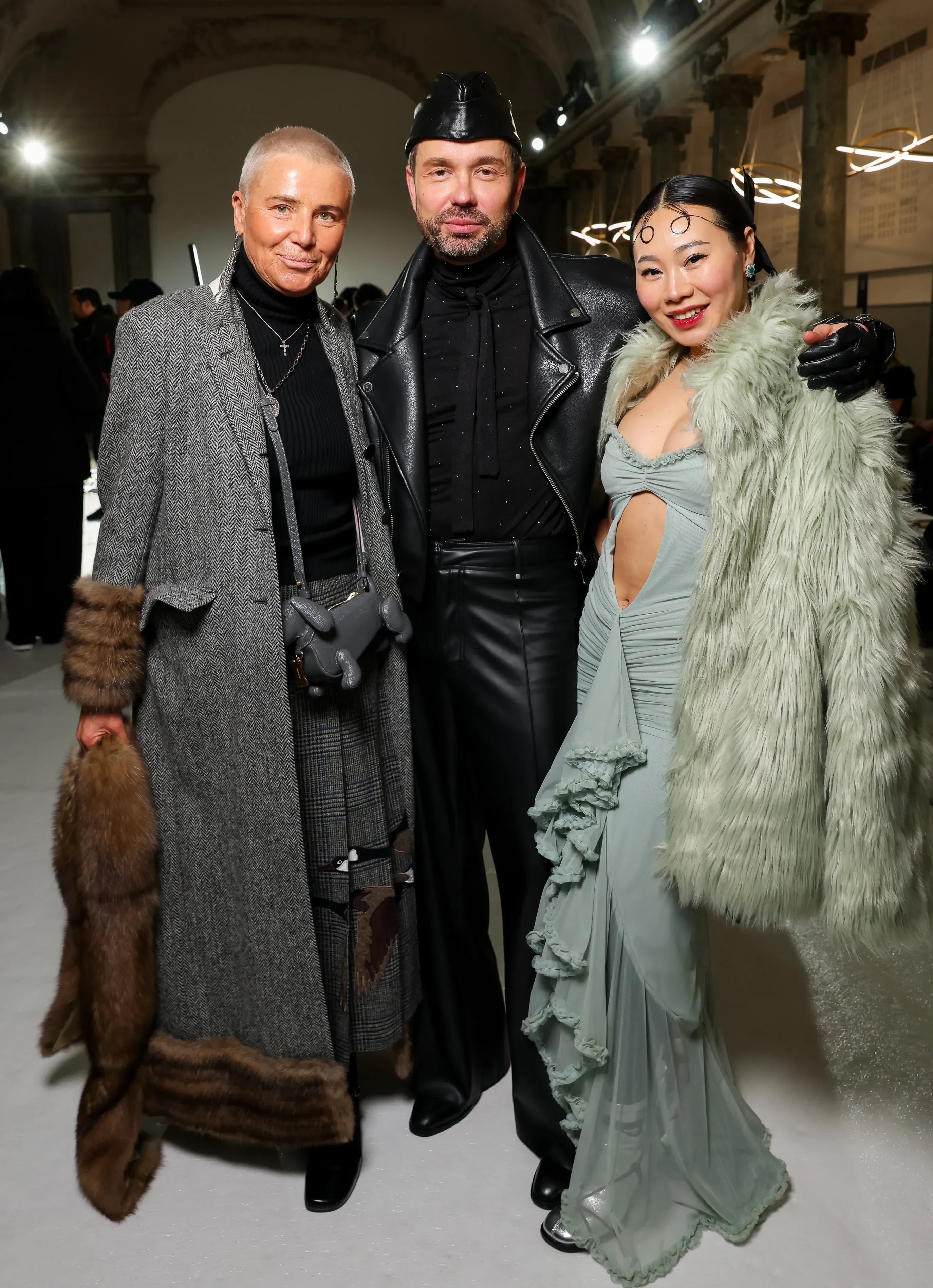 54-летняя оперная дива Анна Нетребко пришла в чёрном платье, а Екатерина Мухина и Оксана Бондаренко надели кожаные пальто. Стилист и судья шоу "Модный приговор" Лилия Рах позировала в тотал-луке Thom Browne, а 34-летняя Таня Дягилева примерила юбку с пайетками на низкой посадке с топом из кристаллов.