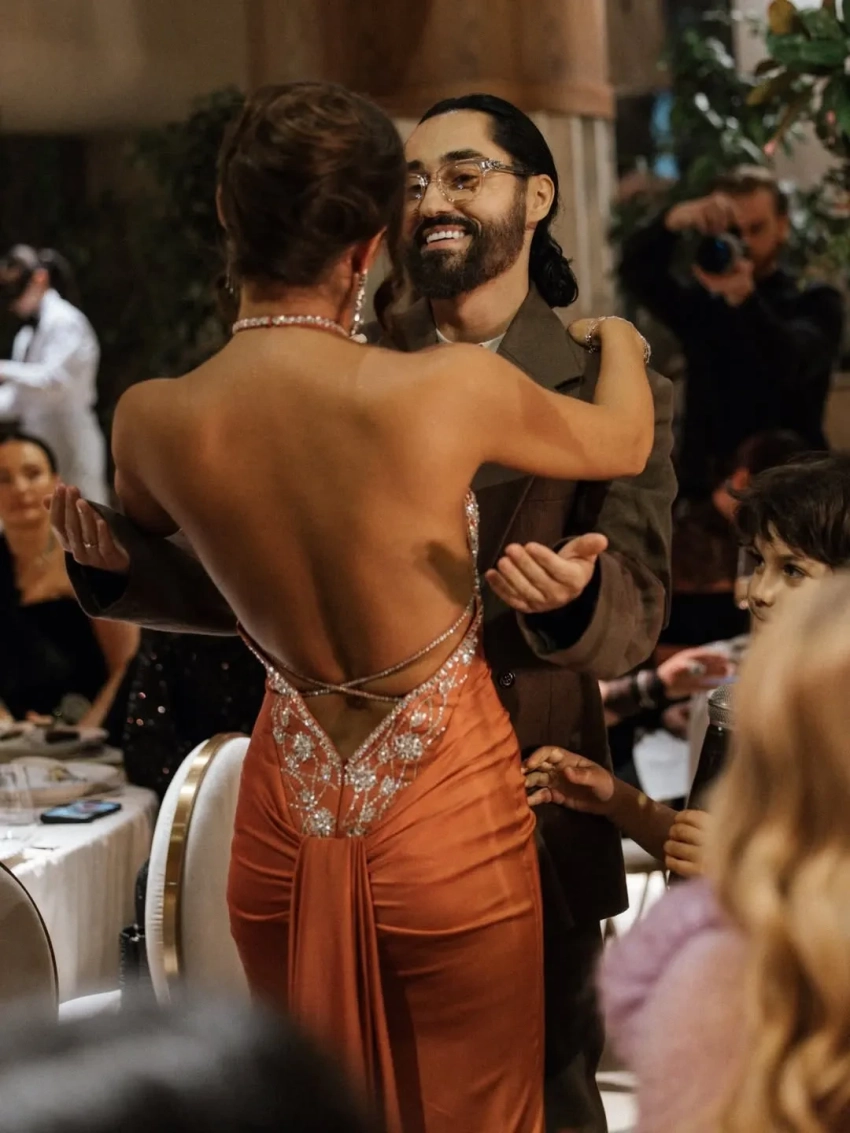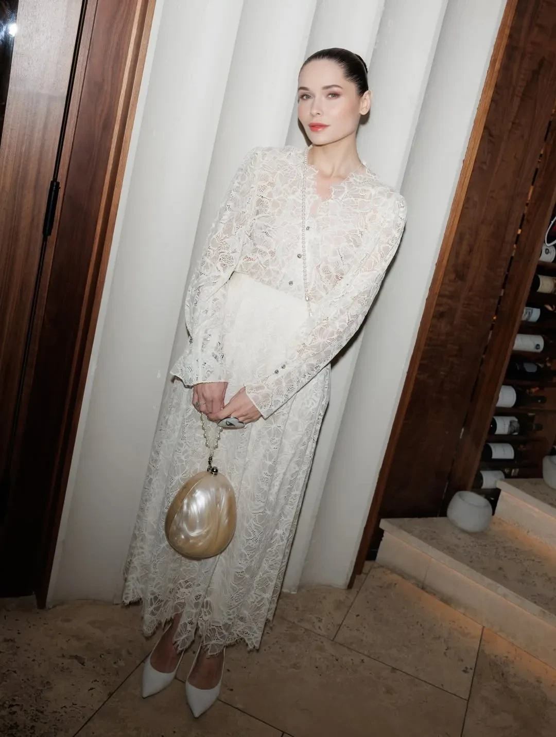 Мельникова появилась перед гостями в платье Mastersuit, расшитом кристаллами. Яна Рудковская надела платье лилового оттенка с сумкой Dior в тон, а Светлана Бондарчук пришла в чёрном. Галеристка и бывшая жена Бориса Белоцерковского Полина Аскери позировала в белом наряде и подарила подруге её портрет.