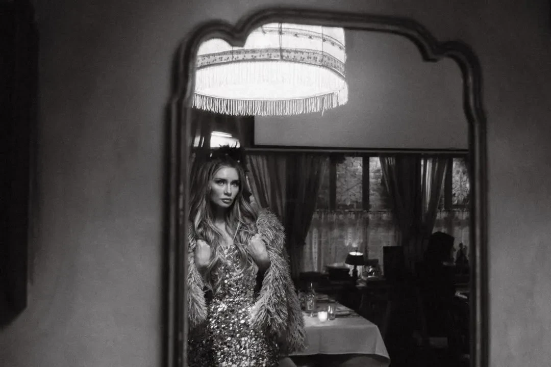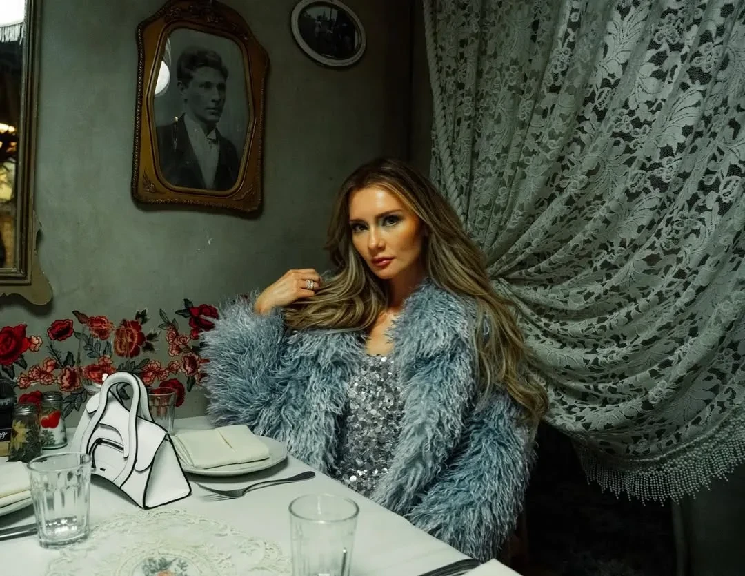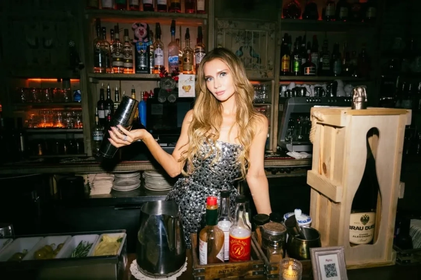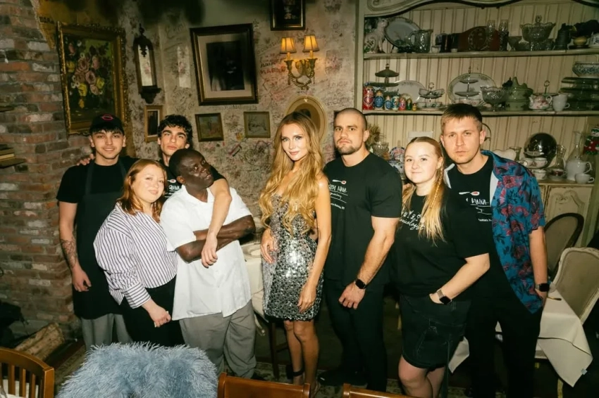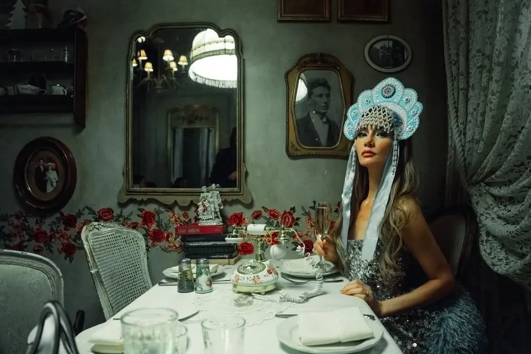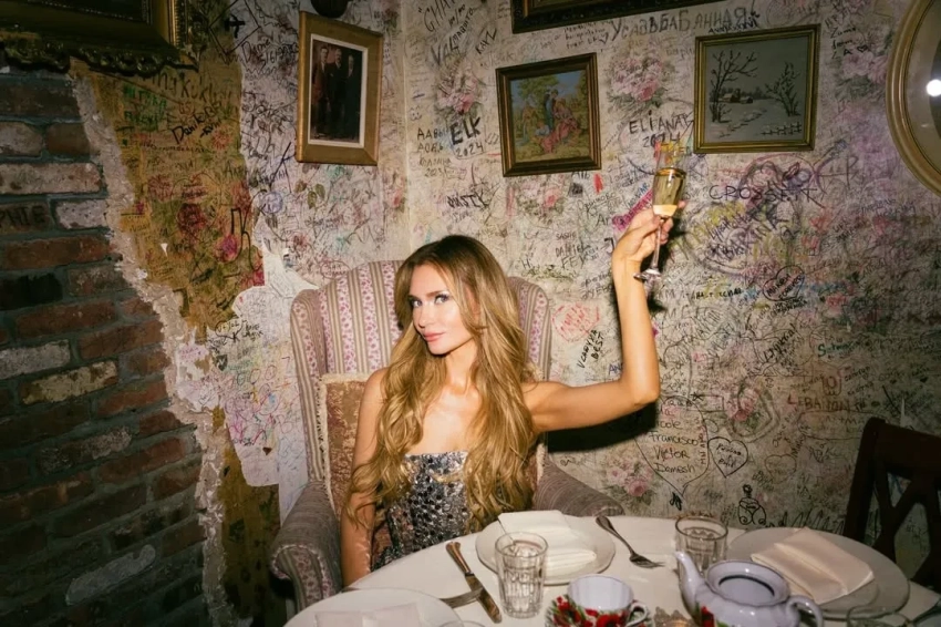 Вечер прошёл в ресторане известной сети "Мари Vanna", концепция которого полностью построена на русской культуре и ностальгии. Для фото Делви попозировала в кокошнике и на фоне полок с матрёшками.